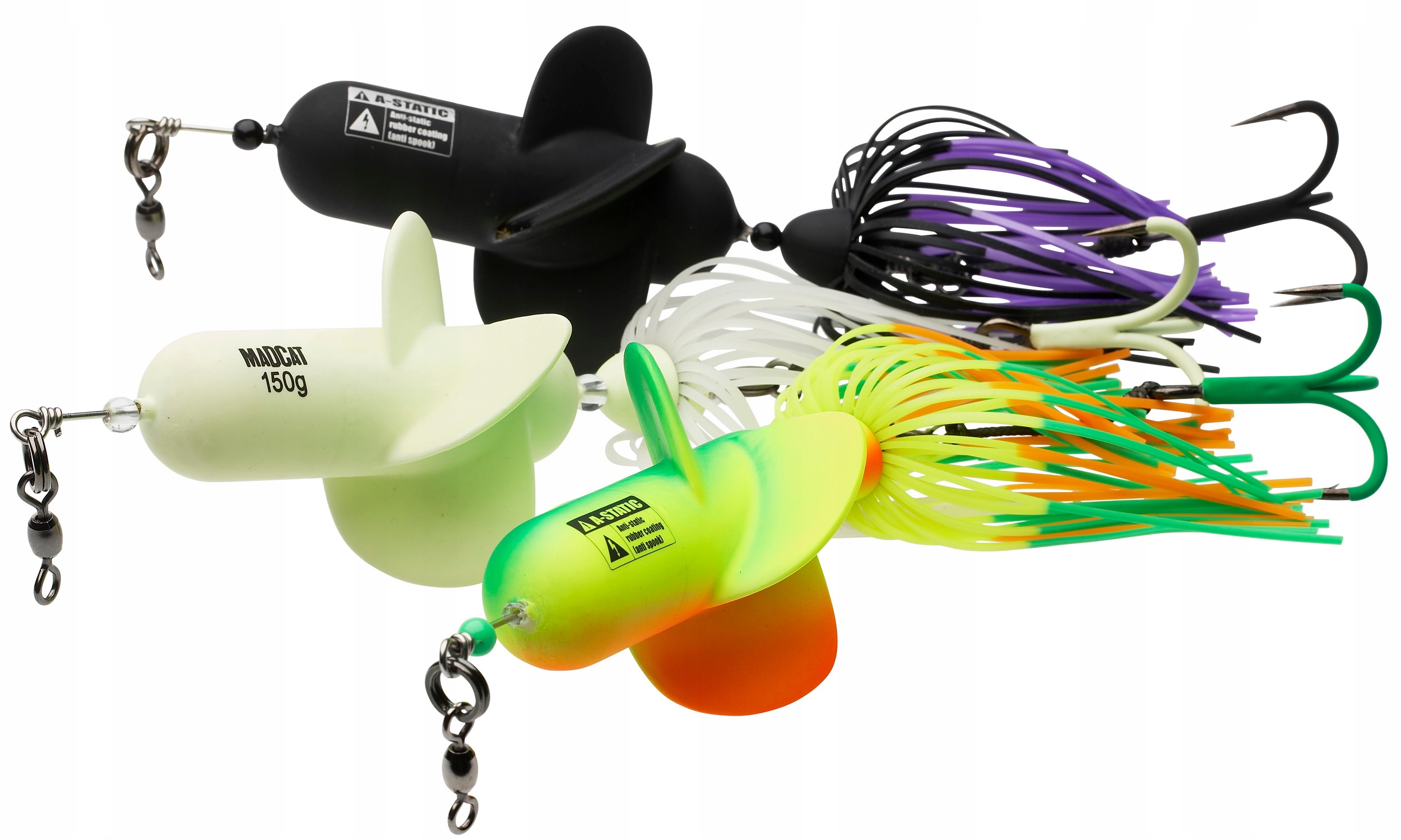 Самые сложные тизеры Clonk, доступные на рынке: A-STATIC, тихие, но все же «кричащие» о внимании: MADCAT A-STATIC Тизеры пропеллера. У тела теперь 4 крыла, что заставляет его бешено вращаться даже на небольшой скорости. Идеально подходит для провоцирования нападения агрессивного сома. Рекомендуется для использования в водоемах с низким рыболовным давлением или в периоды высокой пищевой агрессии сома. Абсолютно первоклассный, современный тизер Clonk. Приманка выполнена по концепции A-STATIC, т.е. прорезинена для минимизации электрического поля, отпугивающего сома. Примечание: чехол может порваться по мере износа крючков.