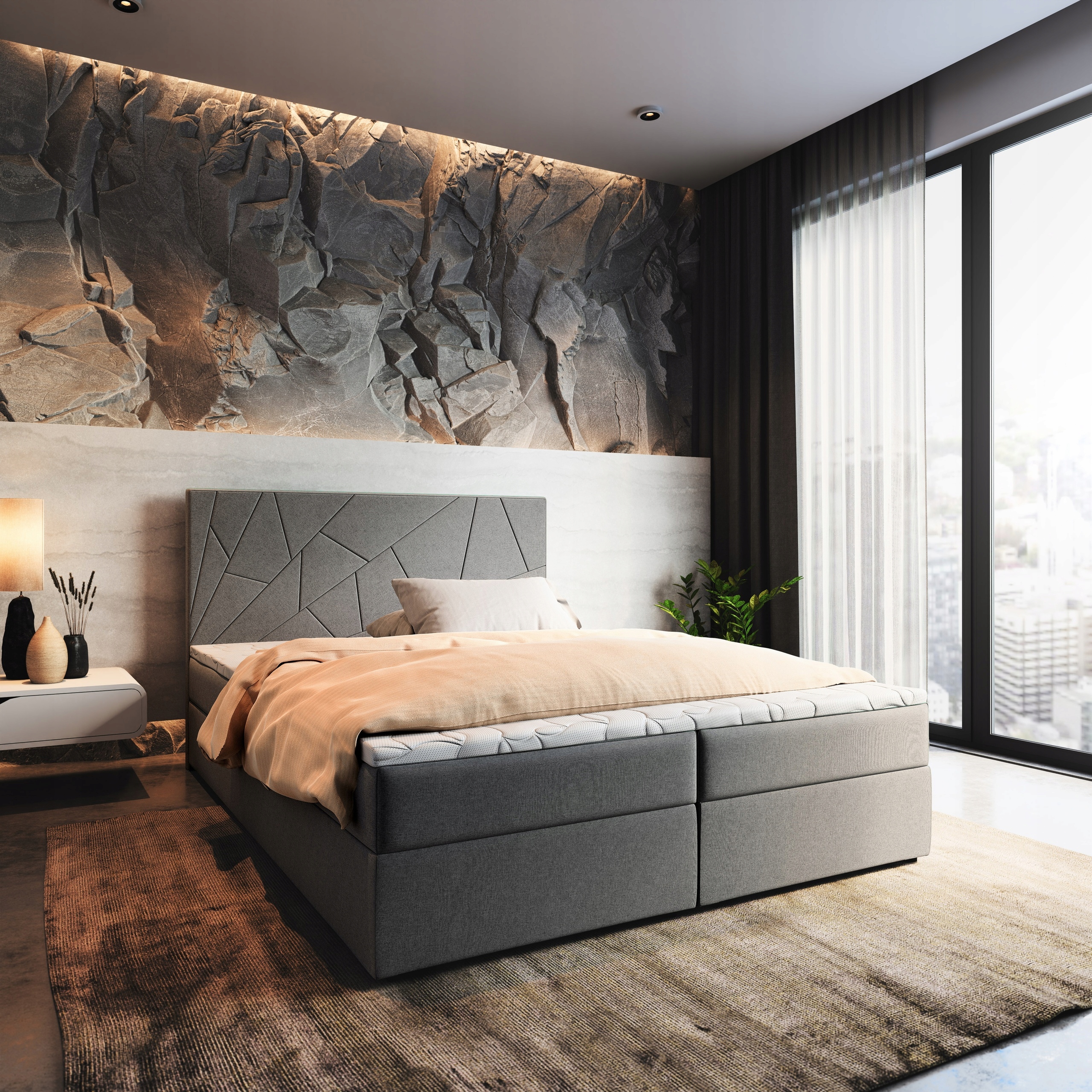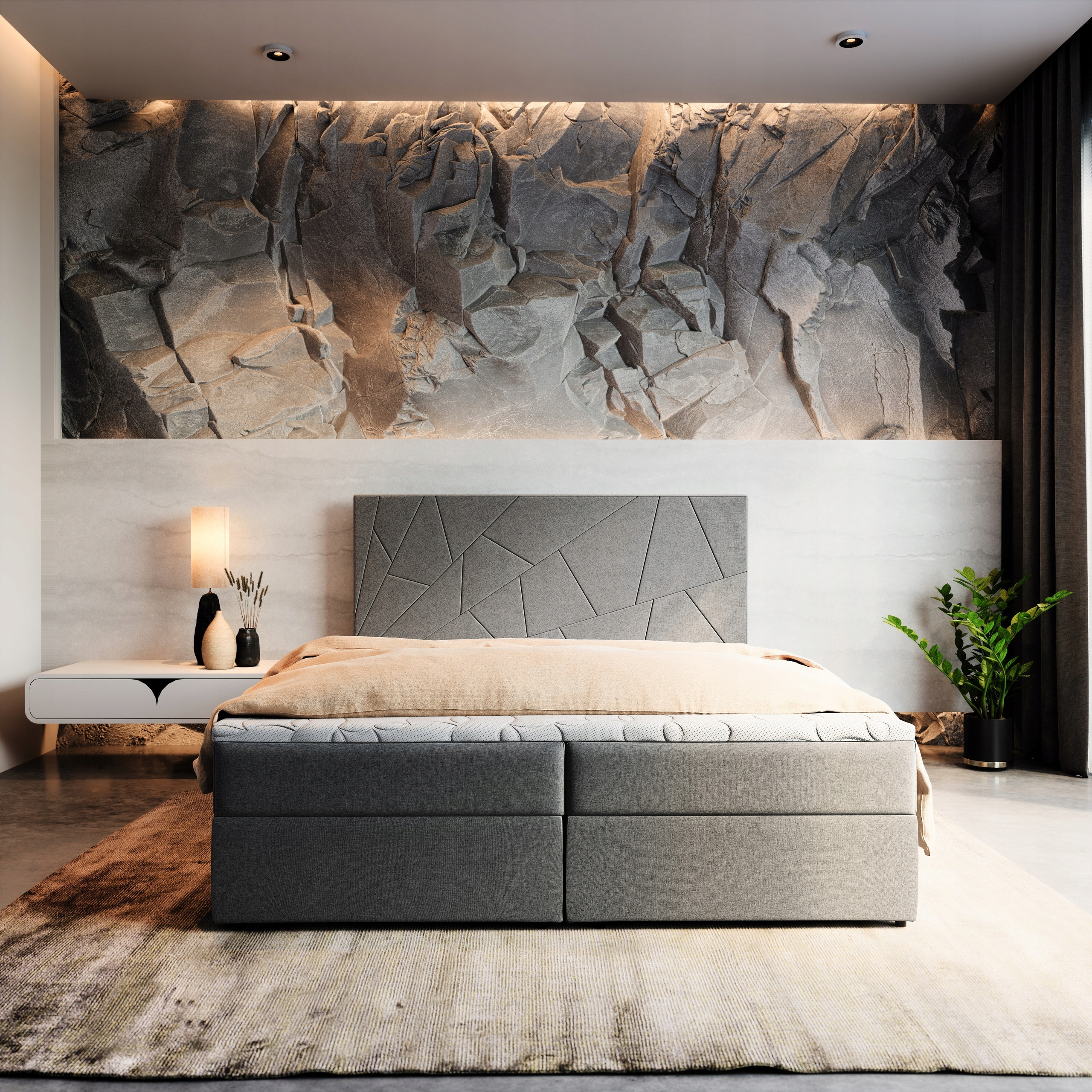 Вы ищете практичное украшение для своей спальни? МАДО – сочетает в себе функциональность кровати и современное искусство. Геометрические, неправильные формы, видимые на изголовье кровати, напоминают авангардную мозаику, эффектно притягивают взгляд и украшают любую комнату. Создайте оазис красоты и покоя в своем пространстве. Контейнер для постельного белья обеспечит порядок и дополнительное пространство для хранения, а встроенный пружинный матрас обеспечит высочайший комфорт. Ткани высочайшего качества добавят шарма и приятной на ощупь отделки, каждое мгновение, проведенное в кровати MADO, подарит вам истинное расслабление и расслабление. Выбирайте необычные решения и здоровый сон – выбирайте континентальную кровать MADO.