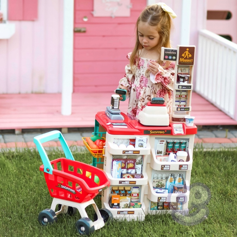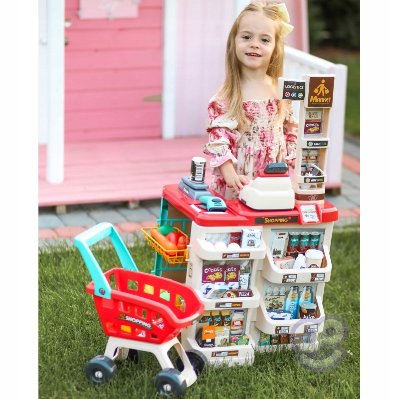 Супермаркет с тележкой для покупок с множеством дополнительных аксессуаров от бренда Woopie. Идеальная идея для детей старше 3. Дети любят подражать своим родителям в повседневных обязанностях, поэтому это идеальный набор для вашего ребенка и дополнительный шанс для вашего ребенка не только развлечься, но и чему-то научиться (ролевое игра очень развивает у ребенка воображение и творческие способности). В магазине имеются все необходимые элементы для оснащения рабочего места небольшого продавца, в том числе: кассовый аппарат с терминалом, весы, сканер, платежная карта и многочисленные продукты. Входящая в комплект корзина для покупок позволяет развлекаться с друзьями, где бы вы ни находились. и когда!