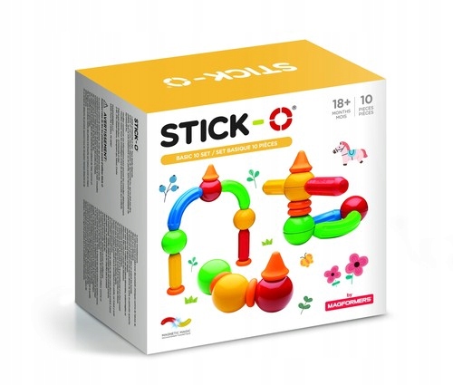 Magformers - глобальный производитель необычных и оригинальных магнитных блоков, изготовленных из высококачественных материалов. Каждый блок содержит неодимные магниты, которые сильно привлекают себя. Stick-0-это новая серия для детей с 18 месяцев, которая позволяет вам открывать образовательные силы магнитных блоков. Базовый набор содержит 10 основных элементов, которые позволяют собирать много конструкций.