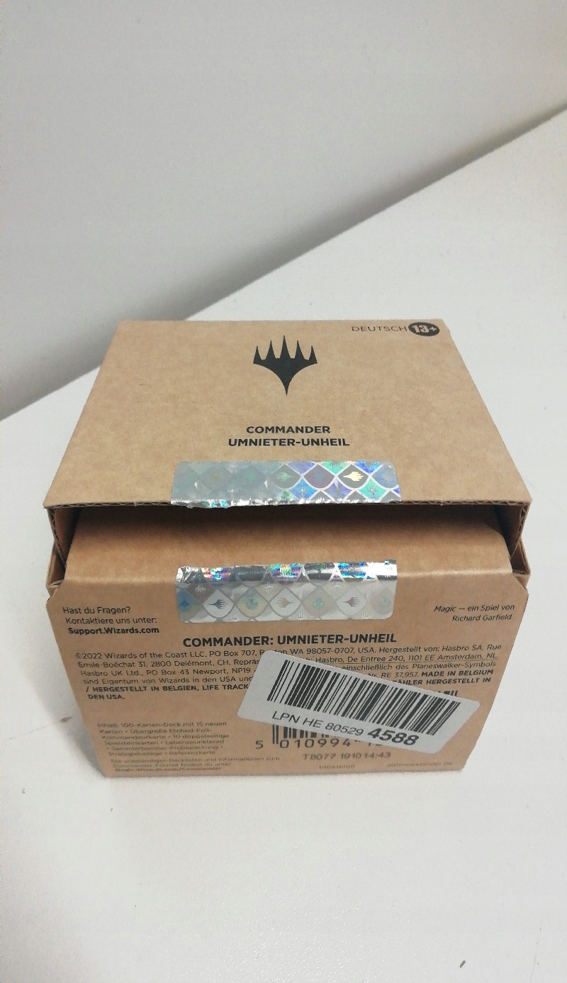 stan: new. h2> Примечания: версия немецкого языка. Оригинал нарушенная коробка. Бустер в фабричной фольге. Настоящие фотографии добавлены в описание. H2> Продукт имеет оригинальную упаковку. H2> Набор включает в себя карту коллекционера, 100 карт, Commander Card, 10 двухсторонних карт, колесо Life Point и ящик для хранения. H2>