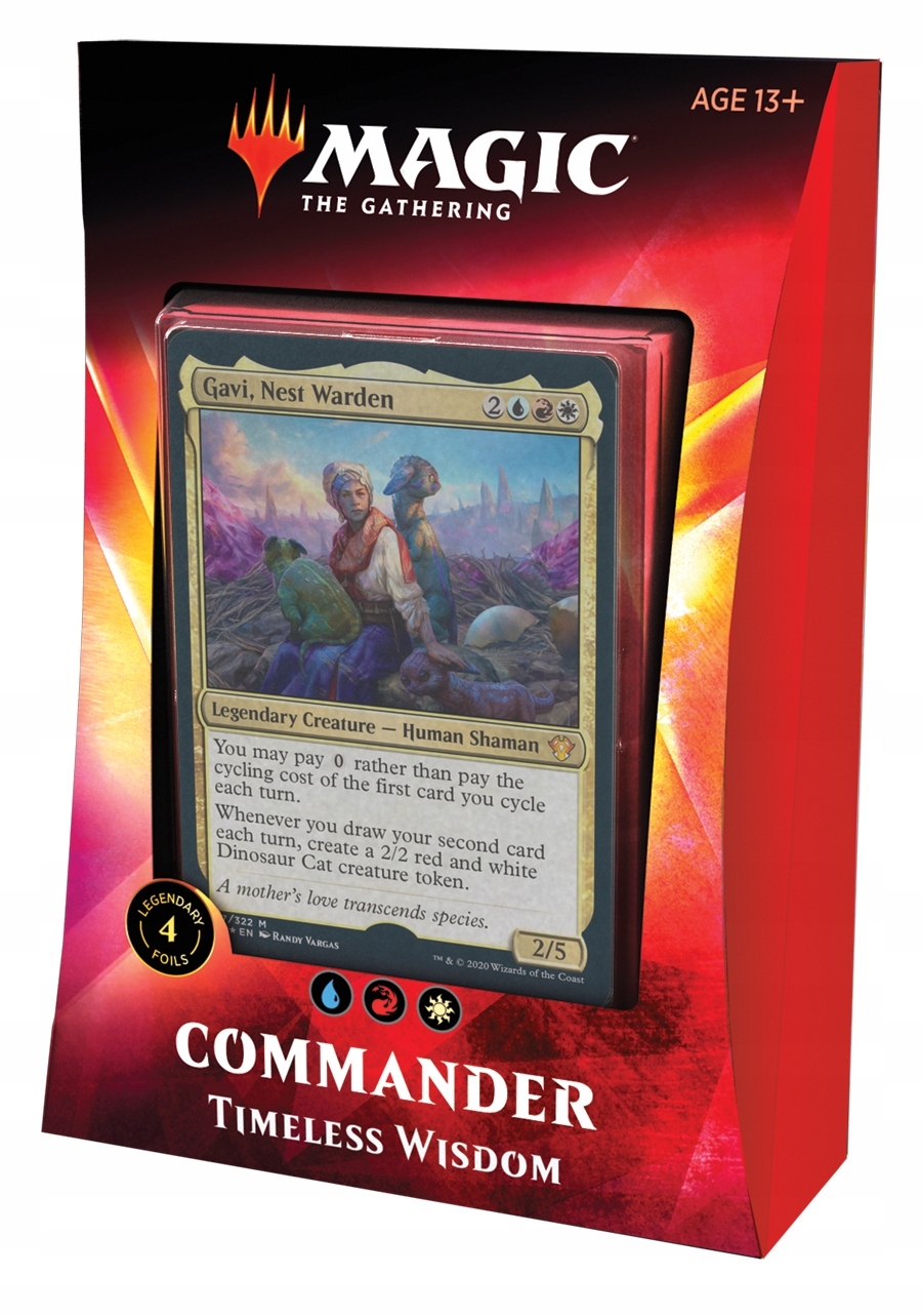 Вневременная мудрость — это колода командира в цветах Джескай (сине-бело-красный), стратегия которой основана на синергии с вытянутыми картами и механике циклического движения. Основная карта колоды — Гави, Страж гнезда, которая позволяет вам использовать цикличность один раз за ход без уплаты стоимости, а также вознаграждает вас созданием жетонов Кота-динозавра 2/2 каждый раз, когда вы активируете цикличность второй раз за ход.