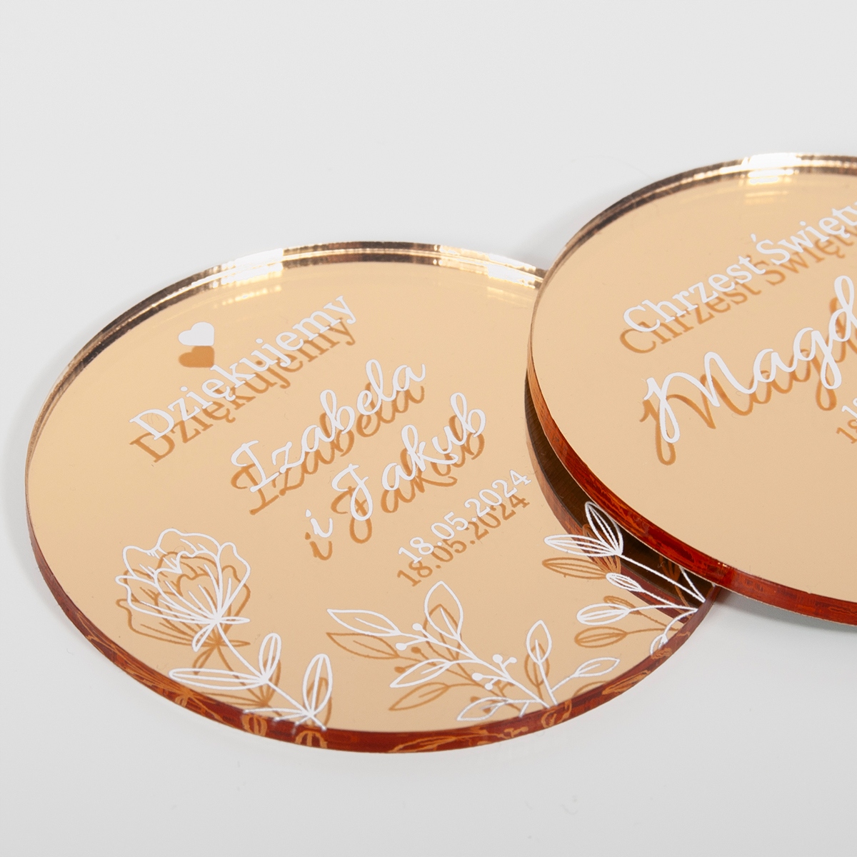 Золотые магниты на зеркальном оргстекле с персонализированным текстом не только станут прекрасным дополнением вашего торжества, но и останутся прекрасным сувениром, который еще долго будет напоминать вашим гостям о моментах, проведенных вместе мероприятие заканчивается.