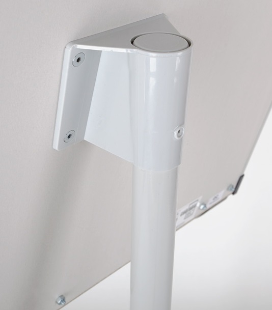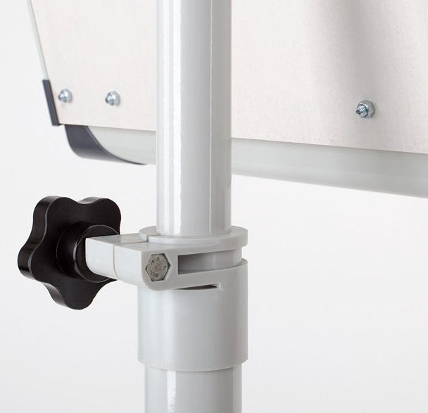 Сухие стираемая доска с магнитными свойствами. Серая структура с элегантной графитовой отделкой. Алюминиевая рама обеспечивает устойчивость и улучшает эстетику изделия. Доска имеет постоянный угол наклона 15°. Блок подвешивается на ручки. Подставка для доски регулируется по высоте от 175 до 195 см. Основание оснащено колесами с системой блокировки, обеспечивающими устойчивость изделия и облегчающими его перемещение. Можно повесить блок формата А1 и ЕВРО, правильно установив расстояние между крючками. Дополнительные 2 алюминиевых кронштейна для подвешивания листов бумаги.