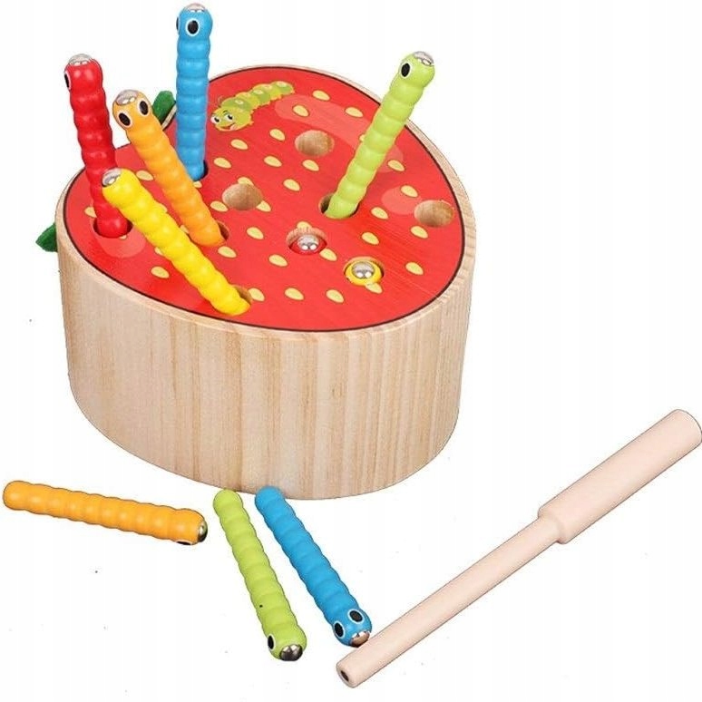 Центральным элементом этой игры являются милые червячки и палочки, оснащенные специальными магнитами. Благодаря такому уникальному решению червячки и палочки красиво притягиваются друг к другу, создавая увлекательный элемент динамичного игрового процесса. В игре используются магнитные свойства этих элементов, чтобы точно вытащить червяка из фрукта, который является одним из элементов доски. Эта задача требует концентрации, терпения и навыков манипулирования, что делает игру отличной возможностью попрактиковаться в ручном труде.
