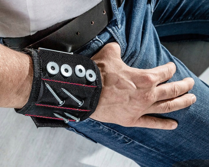 Магнитный браслет — незаменимый инструмент во многих ситуациях. Идеально подходит для сборочных, ремонтных, электромонтажных и столярных работ, а также для автомехаников. Благодаря этому все необходимые элементы всегда под рукой, что значительно ускоряет и облегчает работу. Оголовье также является отличным решением при работе на высоте, где доступ к инструментам и деталям ограничен и каждая секунда на вес золота.