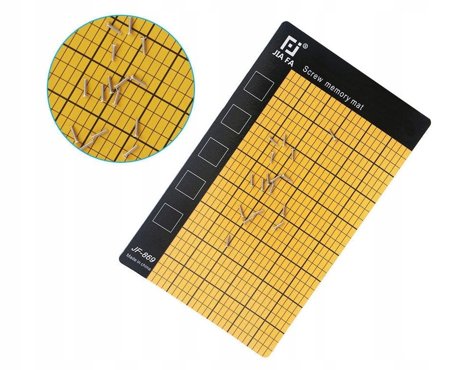 Магнитная подставка для винтов позволяет безопасно хранить маленькие винты. На коврике нарисованы линии, обозначающие место, из которого был удален тот или иной винт.