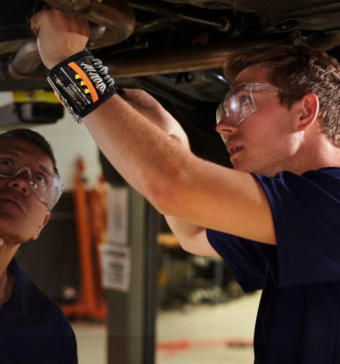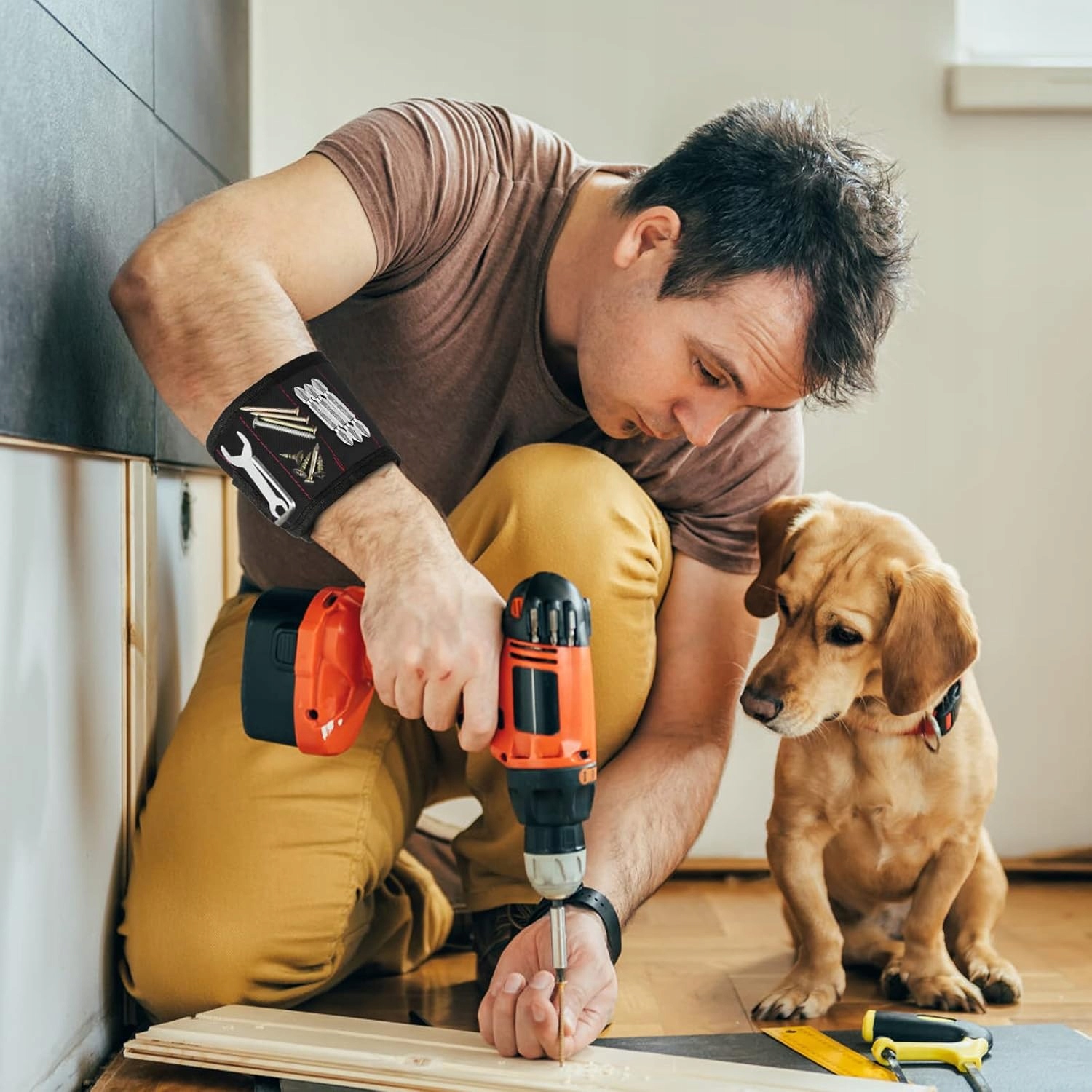 Наш магнитный ремешок — идеальный выбор для каждого любителя DIY, механика или любителя, который ценит порядок и комфорт во время работы. Изготовленный из прочного материала и оснащенный сильными магнитами, ремешок позволяет безопасно хранить винты, гвозди, гайки, биты и другие мелкие металлические элементы прямо на запястье. Благодаря этому инструменты всегда под рукой, что значительно облегчает работу в сложных и неудобных местах.