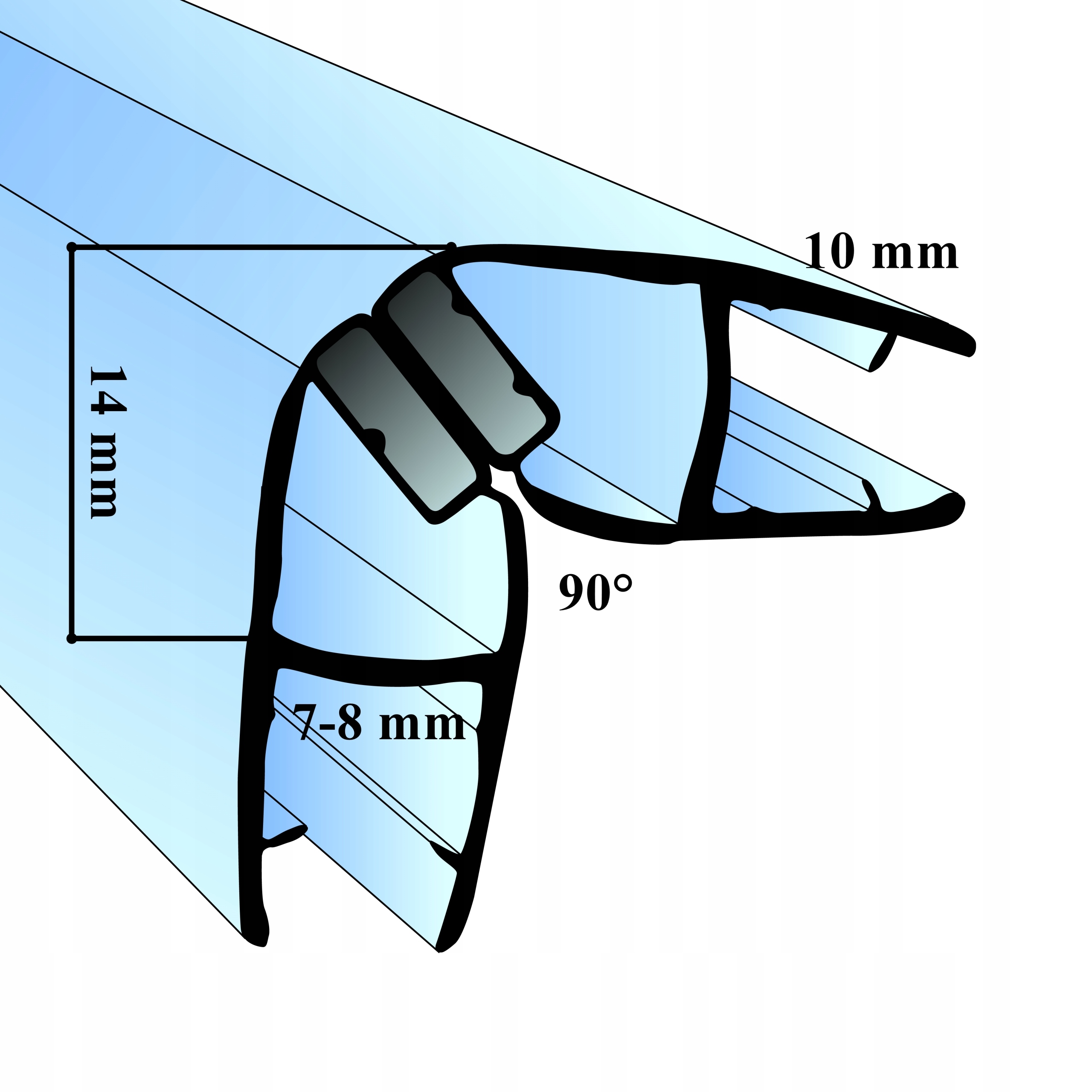 МАГНИТНАЯ ПРОКЛАДКА 90° ДЛЯ ДУШЕВОЙ КАБИНЫ 7 8 ММ 250 СМ 2,5 М