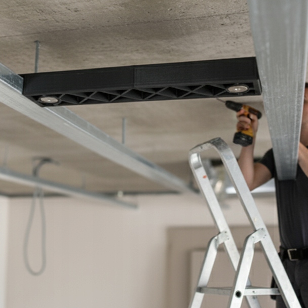 Профессиональная проставка для установки подвесных потолков с профилями CD60. Позволяет быстро и точно позиционировать профили на расстоянии 40 см от оси к оси, в соответствии с правилами монтажа гипсокартона.