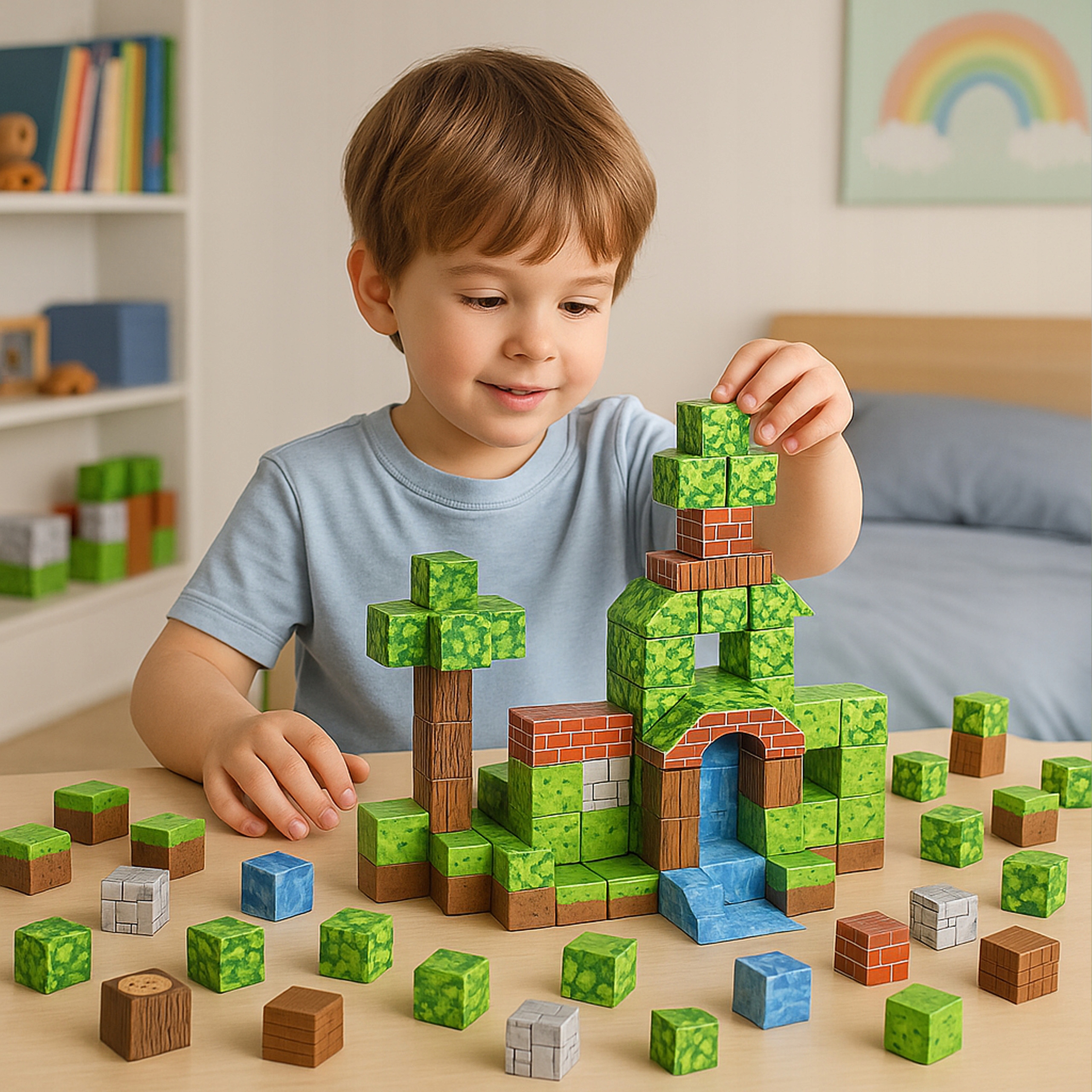 ✅ Вдохновлено популярной компьютерной игрой — блоки в стиле пиксель-арт