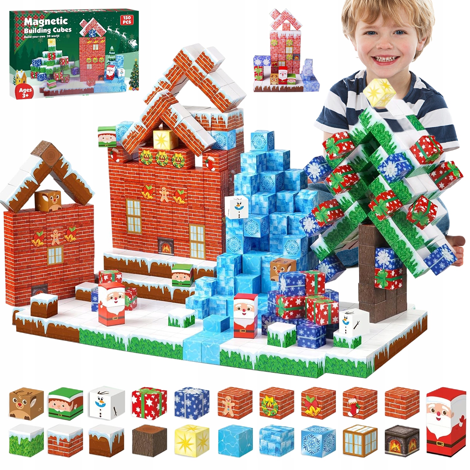 МАГНИТНЫЕ БЛОКИ ПИКСЕЛЬ КУБ ДЛЯ ДЕТЕЙ 150 ШТ САНТА-КЛАУС ОЛЕНЬ