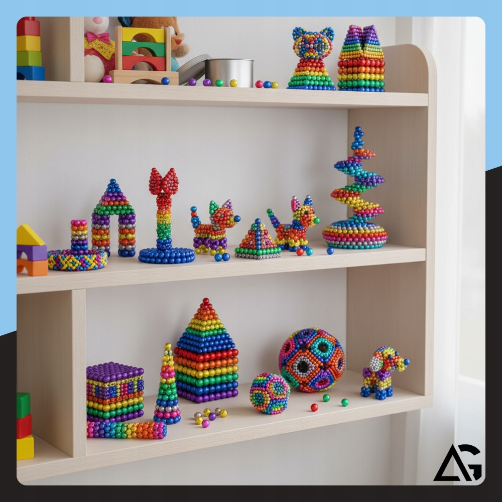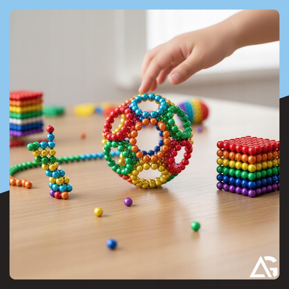 Магнитные шарики способствуют развитию логического мышления, ручных навыков и творческих способностей. Они позволяют учиться через игру — дети могут изучать принципы магнетизма, создавать пространственные структуры и экспериментировать с формами.