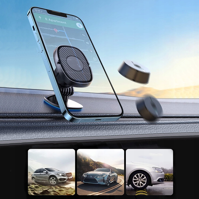 Предмет продажи — элегантный универсальный магнитный держатель, который подходит для большинства моделей телефонов, представленных на рынке. Держатель крепится к приборной панели автомобиля с помощью скотча, поэтому не занимает места на лобовом стекле и не смущает водителя. Он также не закрывает вентиляционную решетку автомобиля. Он оснащен вращающимся на 360 градусов рычагом с головкой, что обеспечивает комфортное использование. Прочная лента предотвращает перемещение ручки во время езды.