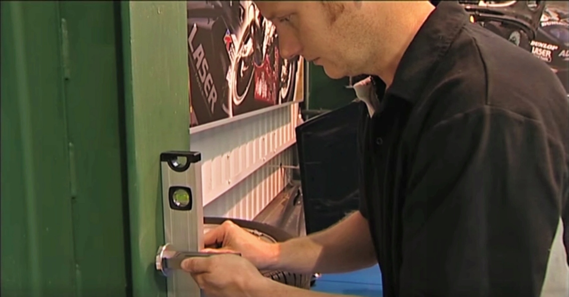 Чтобы убедиться, что магнитный счетчик правильно откалиброван для считывания абсолютного уровня, используйте спирт. уровень, чтобы выровнять поперечный пузырек, и закрепите измеритель на вертикальном металлическом креплении.