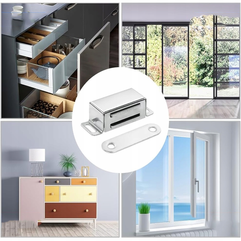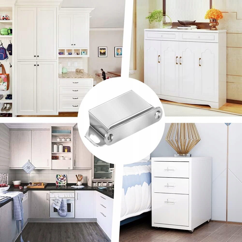 Мощное магнитное закрытие устраняет проблему изношенных, смещенных и приоткрытых дверей шкафа, гарантируя их правильное выравнивание и плавность работы, улучшая общий вид вашего помещения. Держите дверцы шкафа надежно закрытыми, чтобы предотвратить попадание и случайное открытие пыли, влаги и домашних животных. Благодаря этому ваша кухня, спальня, гостиная, ванная комната или гардеробная будут выглядеть чистыми и красивыми.