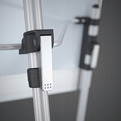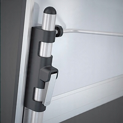 - Возможность подвешивания блока формата А1 и ЕВРО за счет плавной регулировки расстояния между крючками ( скрыт под поднятой панелью)