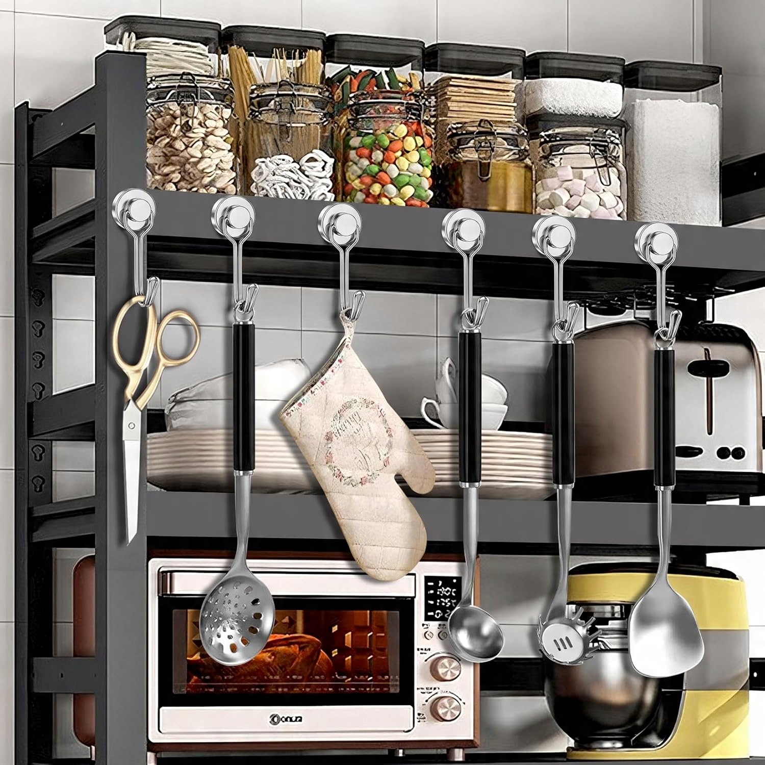 🪝 【Экономия места и удобство】» Эти поворотные крючки предлагают умное и эффективное решение для организации пространства. Их небольшой размер означает, что их можно использовать даже в ограниченном пространстве. Например: подвесить кухонную утварь на кухонную стойку или металлическую полку, а также на верхнюю часть вытяжки.