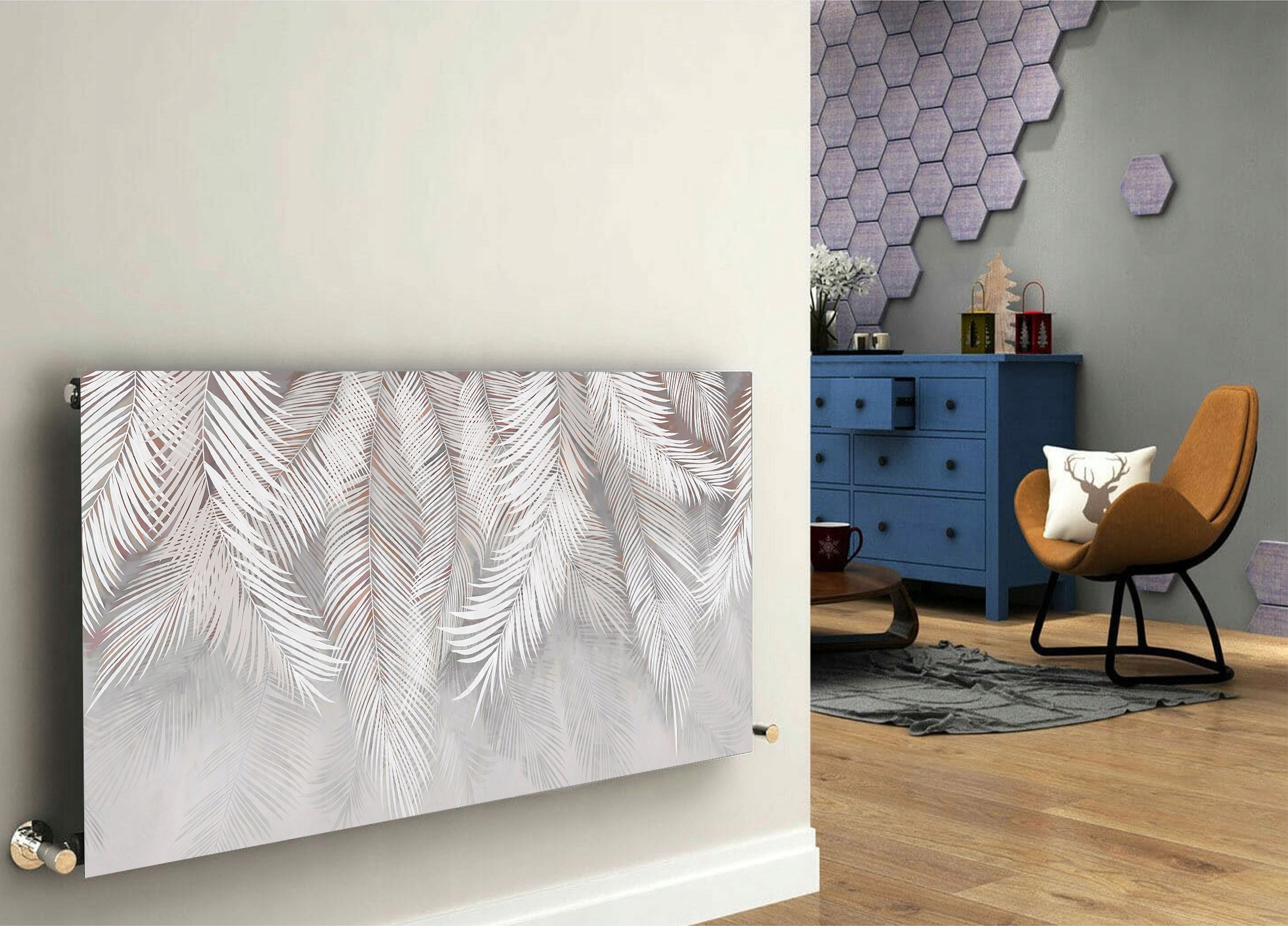 Магнитный коврик на радиаторе серого пальмового листья 80x60