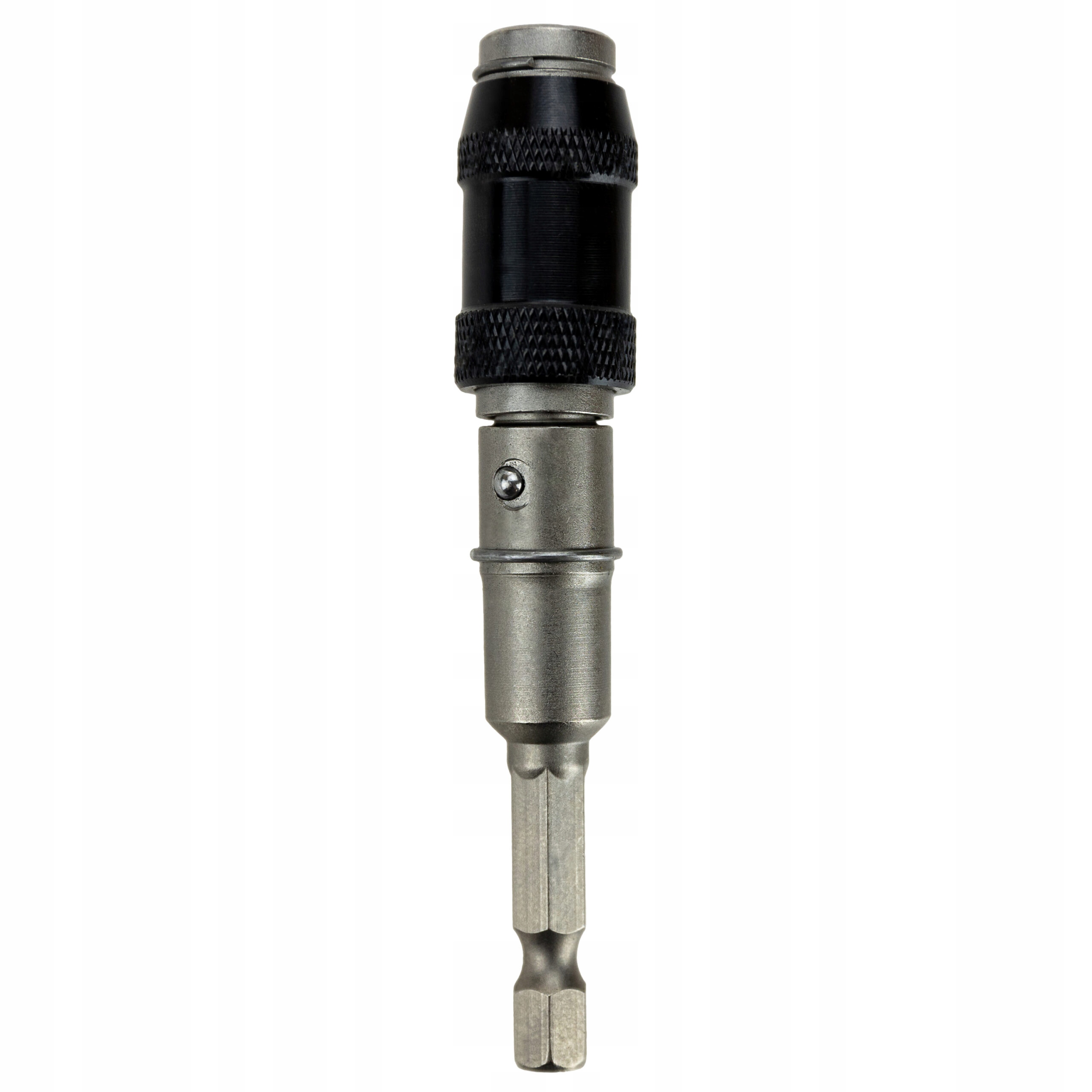 Адаптер оснащен шестигранным креплением 1/4 дюйма, что означает, что он подходит для стандартных бит. Заканчивается рукояткой 1/4 дюйма, его можно использовать в отвертках, шуруповертах и дрелях.Основной отличительной особенностью является подвижная головка, допускающая вращение на различные углы до 20°.Благодаря этому можно свободно маневрировать битами даже в местах с ограниченным пространством.Это особенно полезен при сборке мебели, электромонтажных работах или ремонтных работах. Адаптер оснащен магнитом, гарантирующим надежное удержание бит. Кроме того, адаптер изготовлен из прочной углеродистой стали C45, что обеспечивает его долговечность и надежность.Общая длина адаптера составляет 89 мм, диаметр — 16 мм, что делает его компактным и удобным для хранения в сумке для инструментов.