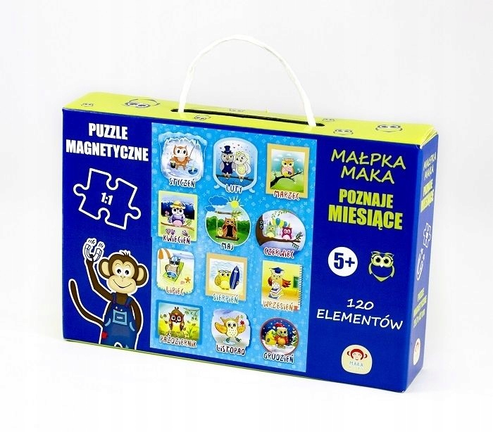 Обезьянка Мака знакомится с Месяцами — он возьмет вас с собой в путешествие благодаря 120 элементам головоломки. Пазлы являются декоративным элементом, они магнитные, поэтому их можно разместить на магнитной доске или холодильнике. Кроме того, пазл «Месяцы» — отличный развивающий продукт, благодаря которому ребенок научится различать формы, цвета, логическое мышление и разовьет свою сообразительность