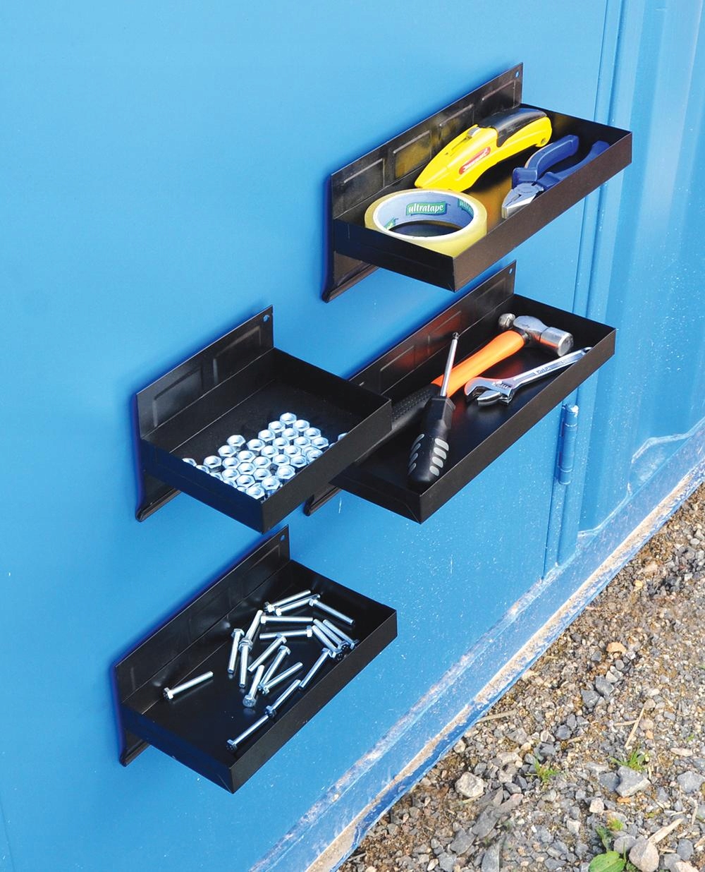 Прочные стальные лотки с боковой магнитной поверхностью, легко прикреплять к любой плоской стальной поверхности. Резиновые контакты избегают царапин. Набор содержит 4 подноса с шириной: 150, 215, 270 и 310 мм