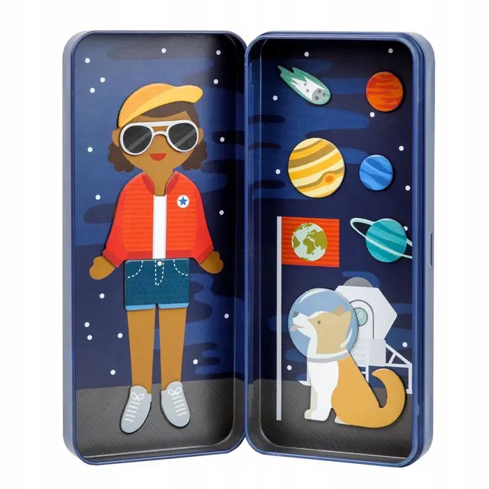Космический коллаж с магнитными фигурами Petit. Этот портативный магнитный набор для переодевания и игр призван вдохновить детей мечтать о большем. В набор входят две сцены и более 25 деталей для часов приключений. Смешивайте и сочетайте. В наборе магнитных персонажей более 25 деталей, которые можно комбинировать и сочетать разными способами, создавая разнообразные фантастические картинки. Внутри металлической упаковки находятся два полноцветных фона, которые будут служить декорациями. Упакованные в легко закрывающуюся банку, они идеально подходят как для путешествий, так и для дома. Он подарит вашему ребенку много часов веселья, развивает моторику, воображение и вдохновляет на творческую игру. Магнитные персонажи также станут прекрасным подарком любому ребенку.