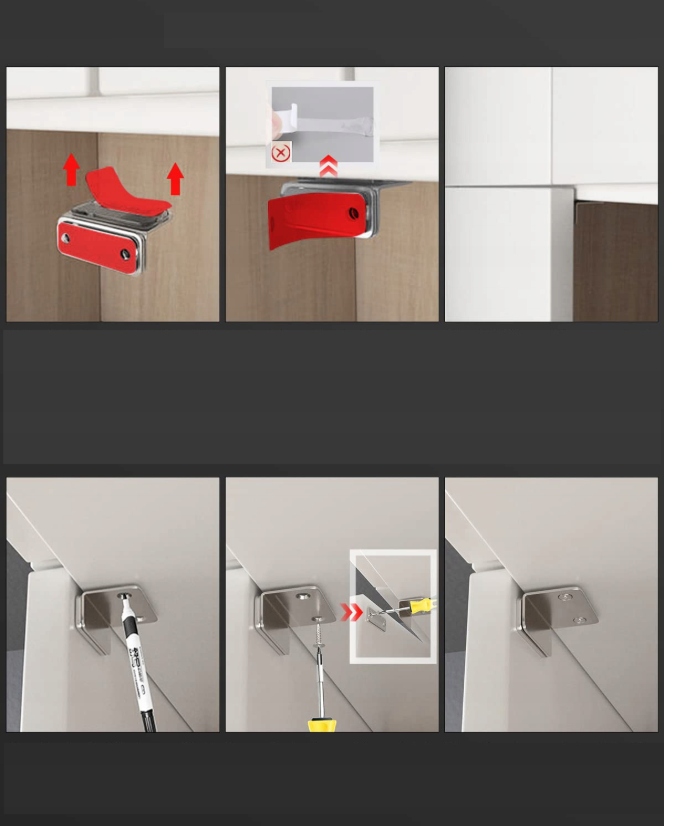 Сильный клей: Двойная клейкая лента достаточно прочна, чтобы закрыть шкаф без бурных отверстий на винтах для ввинчивания. (Примечание: прикрепленный клей доступен в красный и белый и будет отправлен случайным образом.) Также убедитесь, что винты для установки. Пожалуйста, закройте и откройте дверь через 12 часов, чтобы клей хорошо прилипал к этой поверхности.