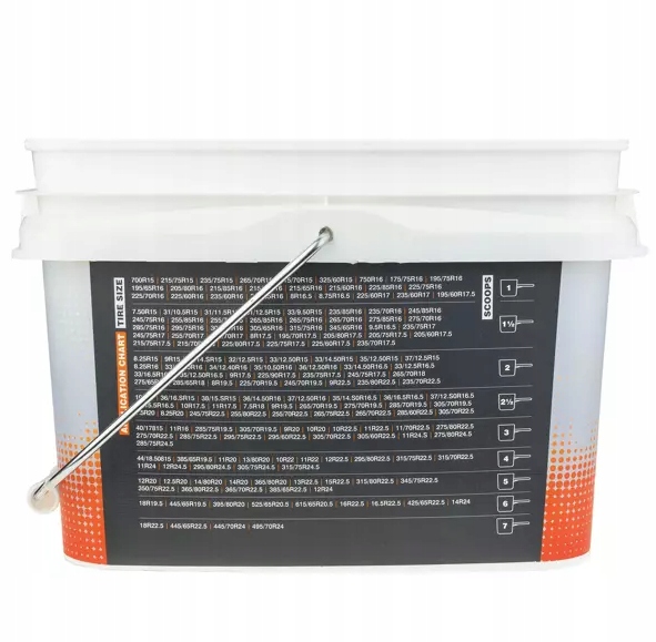 Просто засыпьте отмеренное количество балансировочных шариков в шину один раз, чтобы обеспечить правильную балансировку колеса на весь срок службы шины. В ведре имеется практичная лопаточка, вмещающая примерно 90 г шариков. Таблица применения на упаковке поможет подобрать нужное количество шариков под размер шины.