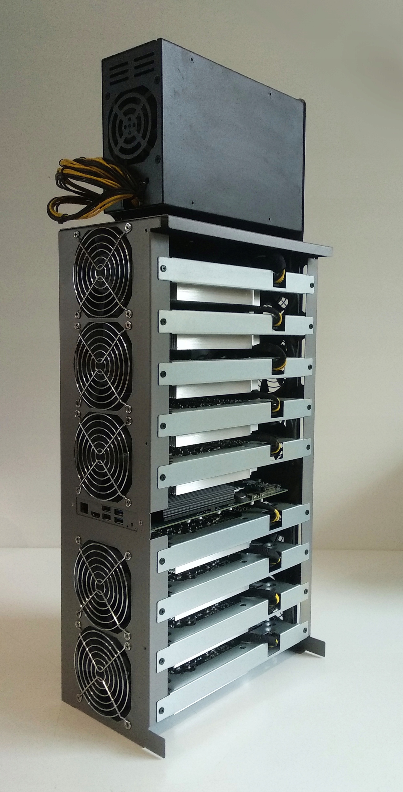 Устройство создано для майнинга, это не адаптированная конструкция игровой материнской платы, а продуманная , профессиональный дизайн: