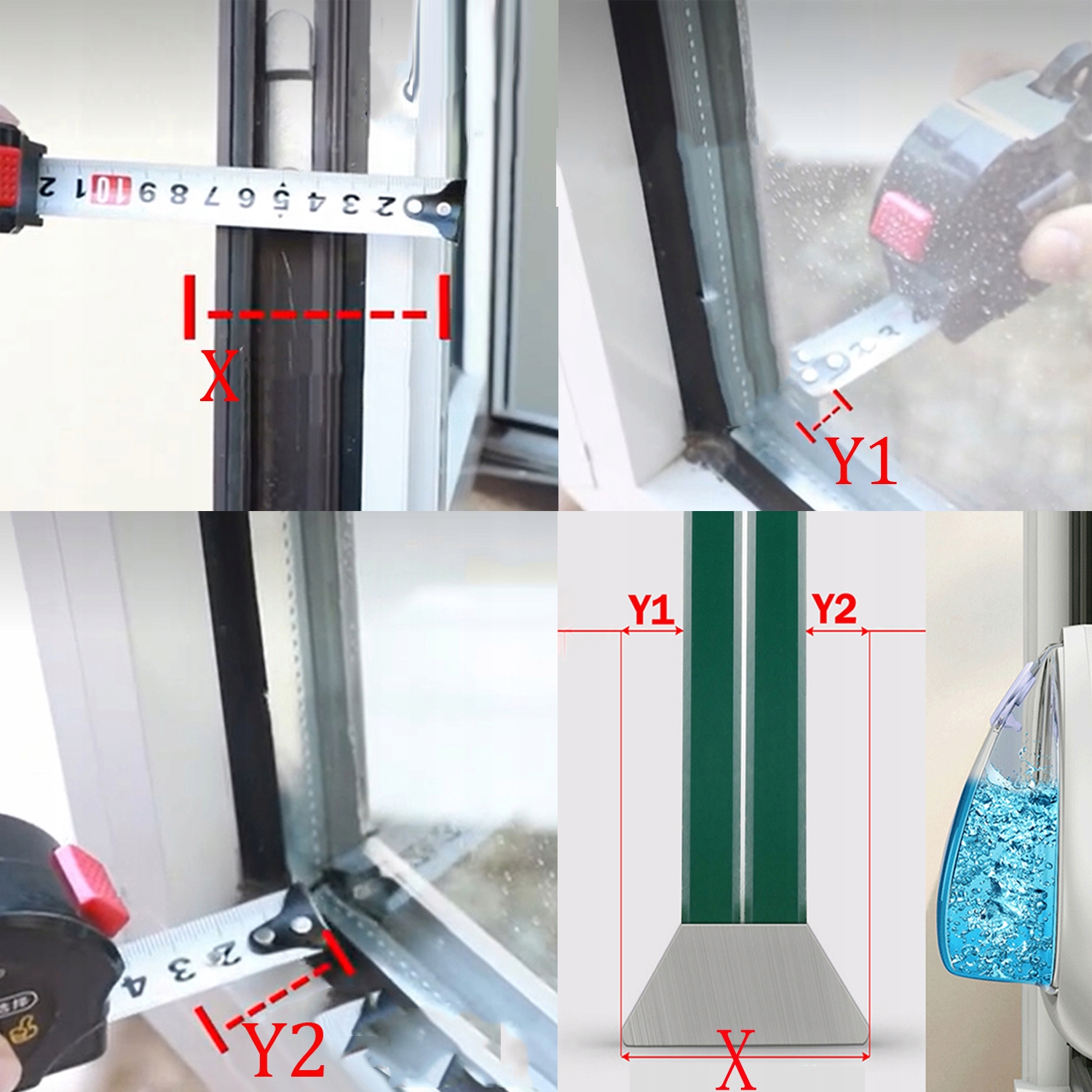 Ширина окна x - внутренняя ширина окна Y1 - внешняя ширина окна y2 = толщина стекла