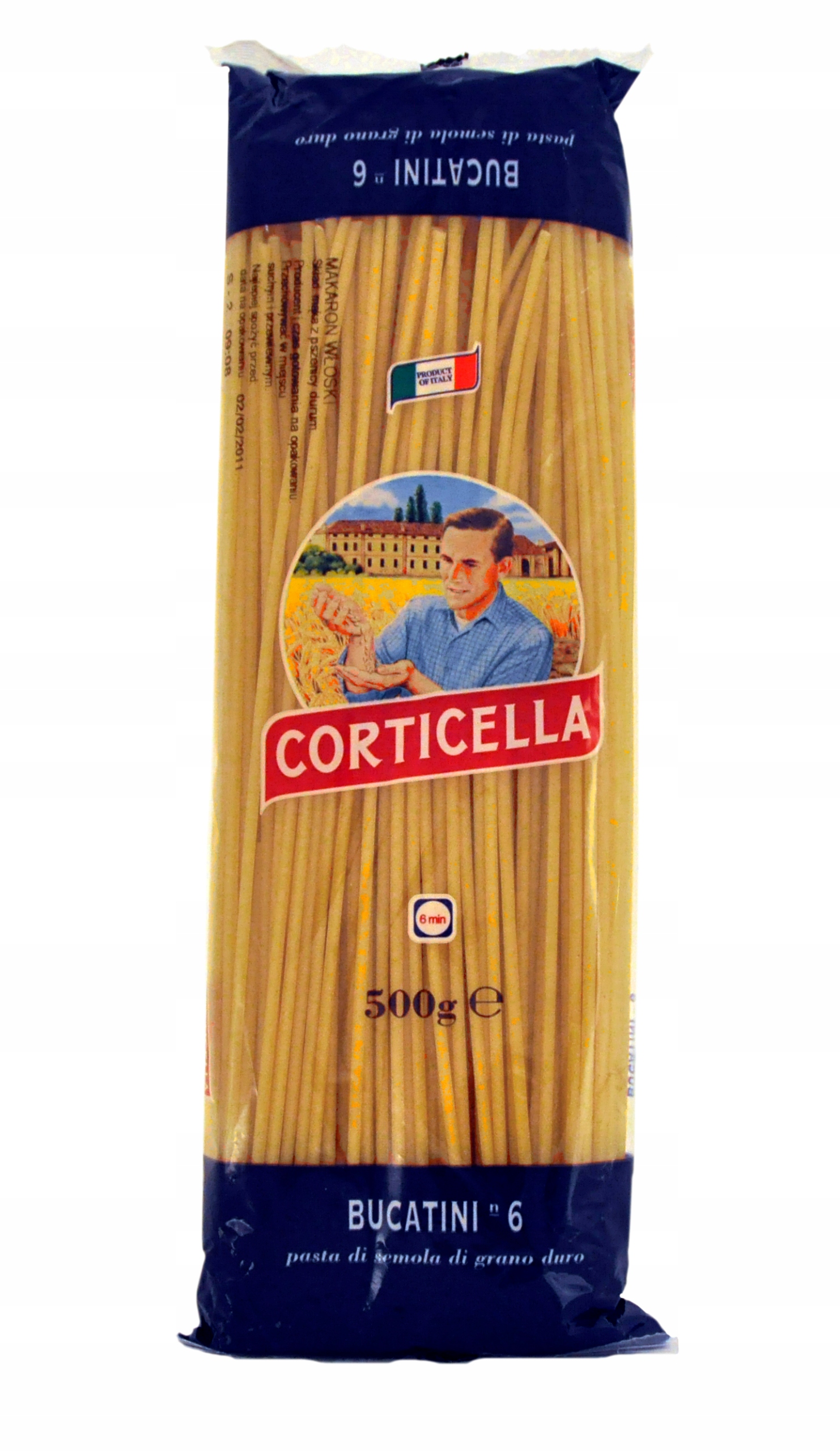 Традиция итальянской кухни вкус, широкий ассортимент, высокое качество и конкурентоспособная цена – основные характеристики макаронных изделий Corticella, изготавливаемых из 100% манной крупы - муки твердых сортов пшеницы. Макаронные изделия являются основным ингредиентом каждого продукта. Ежедневное меню итальянца. В Италии известно более 300 видов макарон, различающихся в основном формой. Самая популярная паста в Италии и в мире – спагетти. В бренде Corticella мы можем выбирать как классические спагетти, так и спагетти букатини (длинная тонкая трубочка с отверстием посередине).