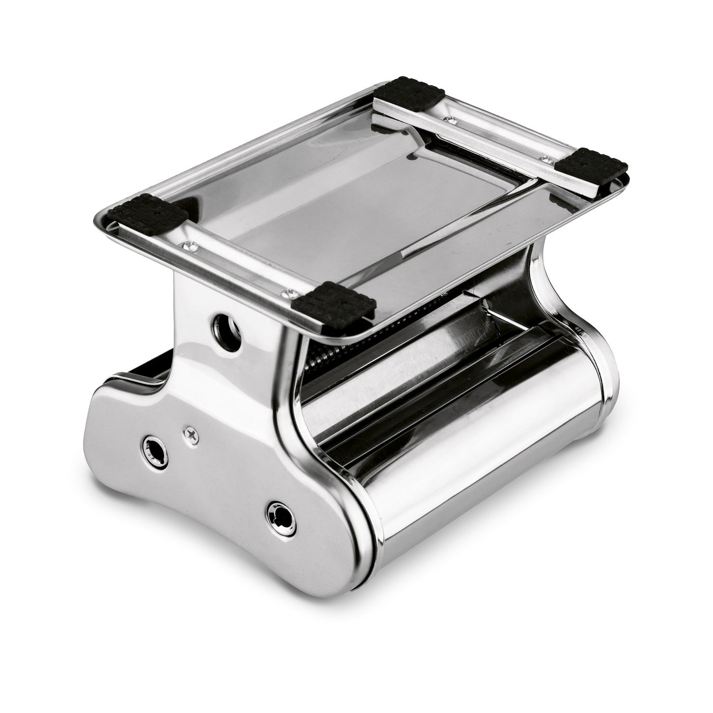 Ручная машина для приготовления макаронных изделий Konighoffer Pasta Mini изготовлена из нержавеющей стали. Управление осуществляется с помощью съемной рукоятки. Вы сможете равномерно раскатывать тесто разной толщины. Вы также можете использовать устройство для нарезки домашних спагетти — равномерно, качественно и точно. Более того, вы можете легко прикрепить бритву к столешнице во время работы. Для этого имеется регулируемый зажим. Достаточно, чтобы толщина столешницы не превышала 4,4 см. Устройство имеет основание, защищенное резиновыми элементами, чтобы не повредить стол, к которому оно прикручено. Таким образом вы облегчите приготовление листов лазаньи и даже приготовите тесто для пельменей идеальной толщины (ее можно регулировать с помощью ручки макаронной машины Pasta Mini 19 х 14,5 х 13 см). Вы также получите продукт, который легко содержать в чистоте и хранить. Продукт рекомендует Ева Вахович. Как амбассадор бренда Konighoffer, она горячо и с улыбкой рекомендует его для домашнего использования. Вместе с ним вы получите свой рецепт для дома. Это один из лучших вариантов в этой категории!