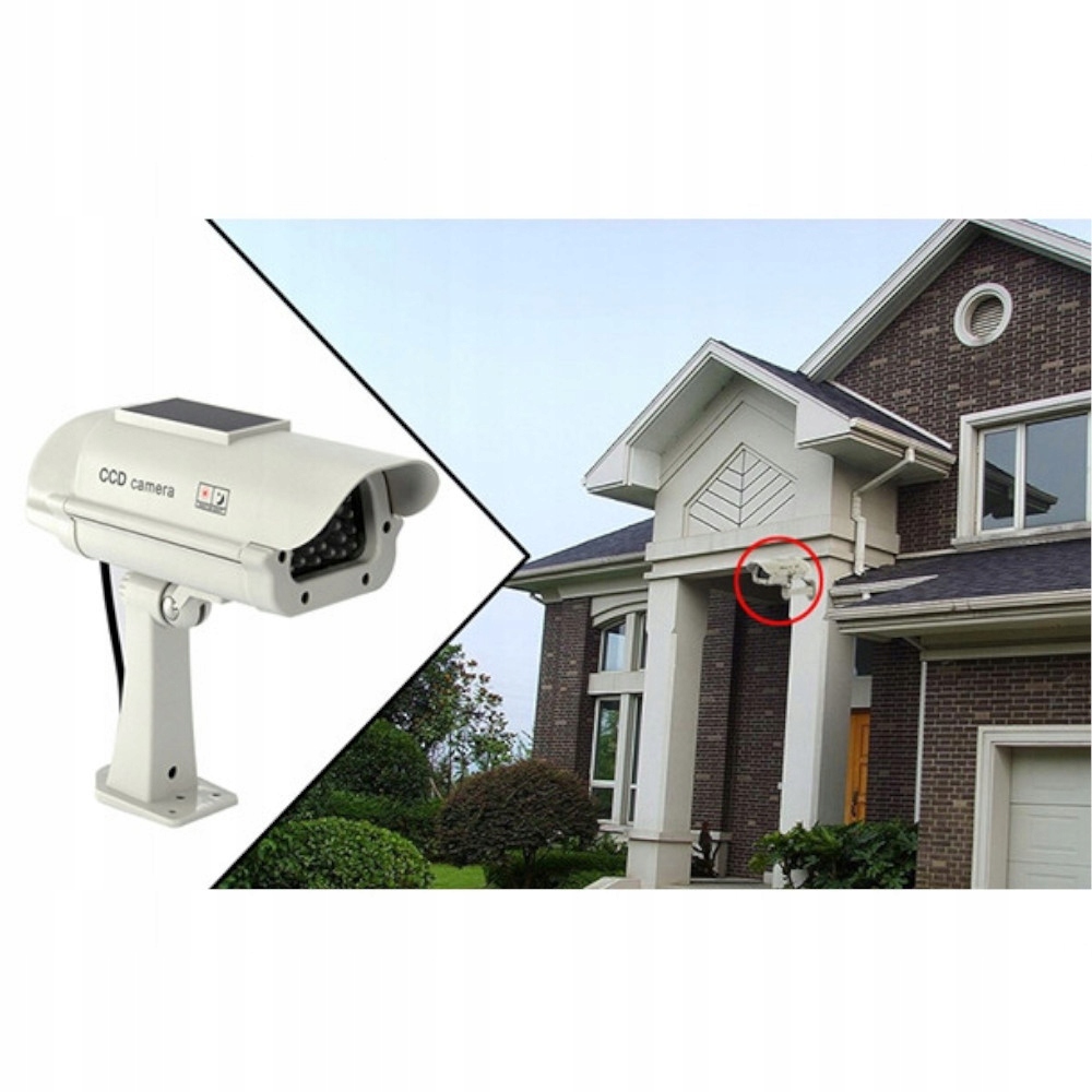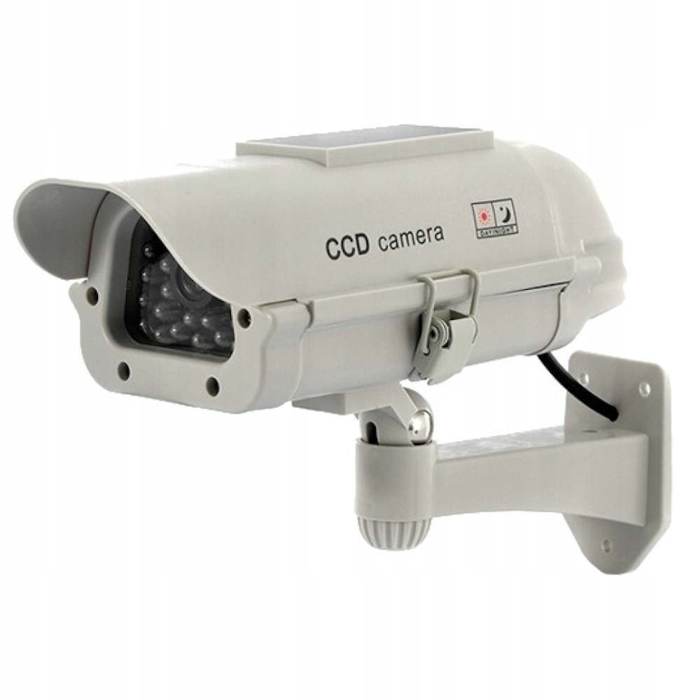 Макет солнечной CCD-камеры со светодиодной трубкой имитация камер видеонаблюдения. Он оснащен мигающим красным светодиодом и кабелем, соединяющим корпус с объективом, который выполнен очень точно. Благодаря этим элементам все получается очень достоверно, достоверно воспроизводя реальный круглосуточный мониторинг.