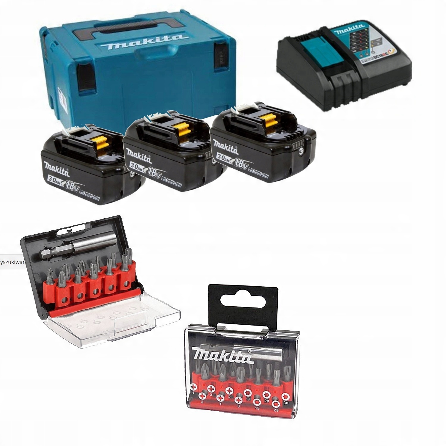 - Батареи BL1830B, 3,0 Ач, 18 В, 3 шт.