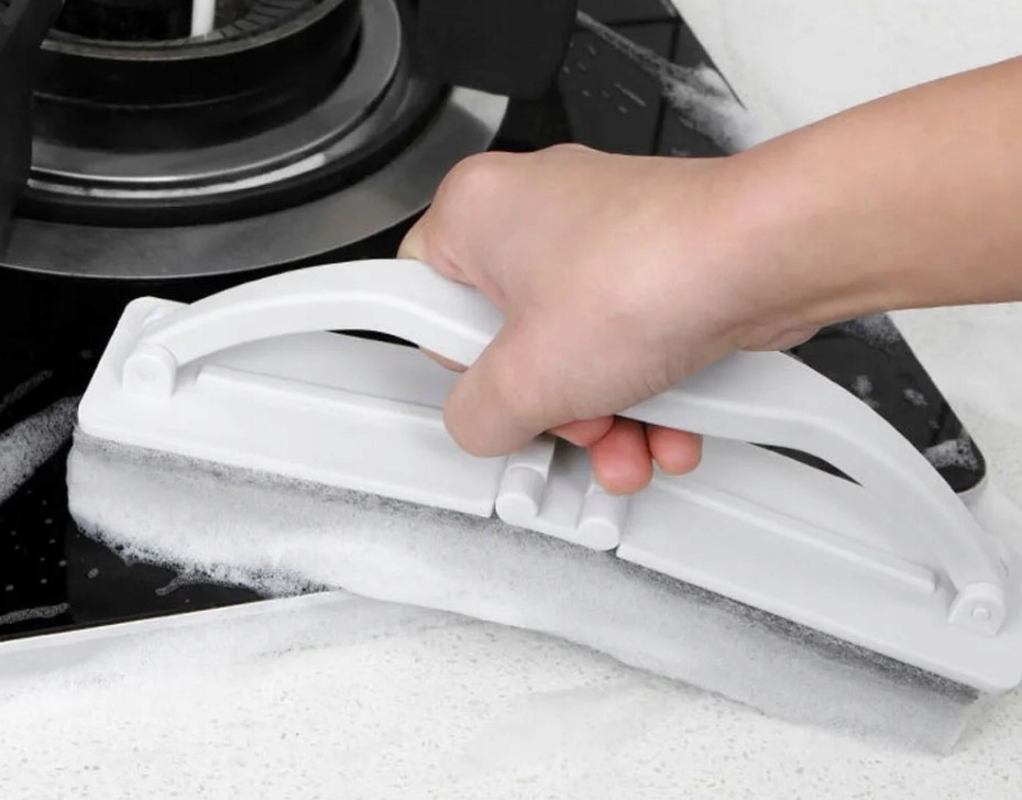 1. Эта складная щетка для чистки губкой — универсальный и удобный инструмент для чистки различных поверхностей, включая посуду, раковины и столешницы.