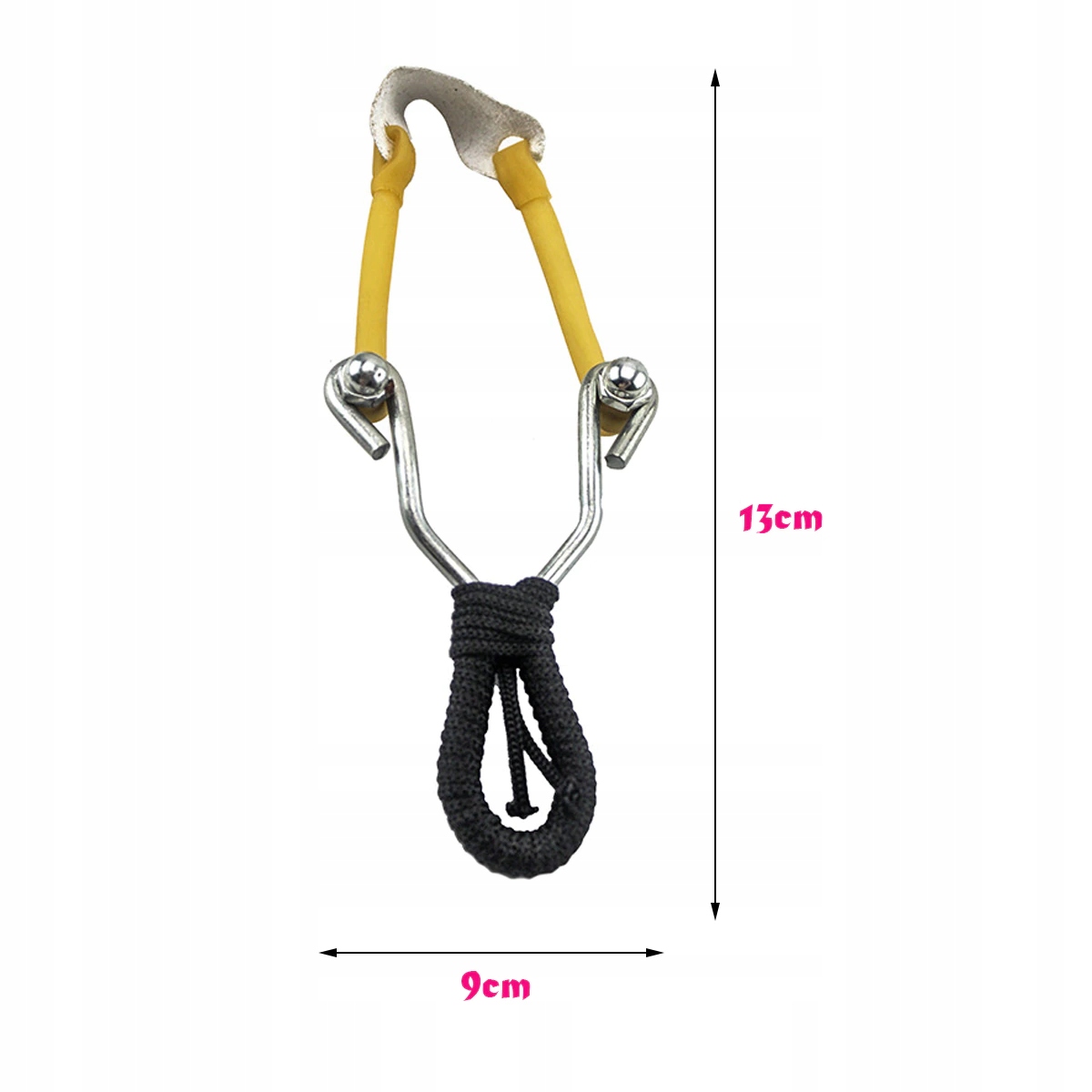 Рогатка полностью изготовлена из толстой нержавеющей стали. Рукоять обмотана толстой веревкой, поэтому идеально лежит в руке. Тетива изготовлена из прочной резины, а держатель пули — из кожи.