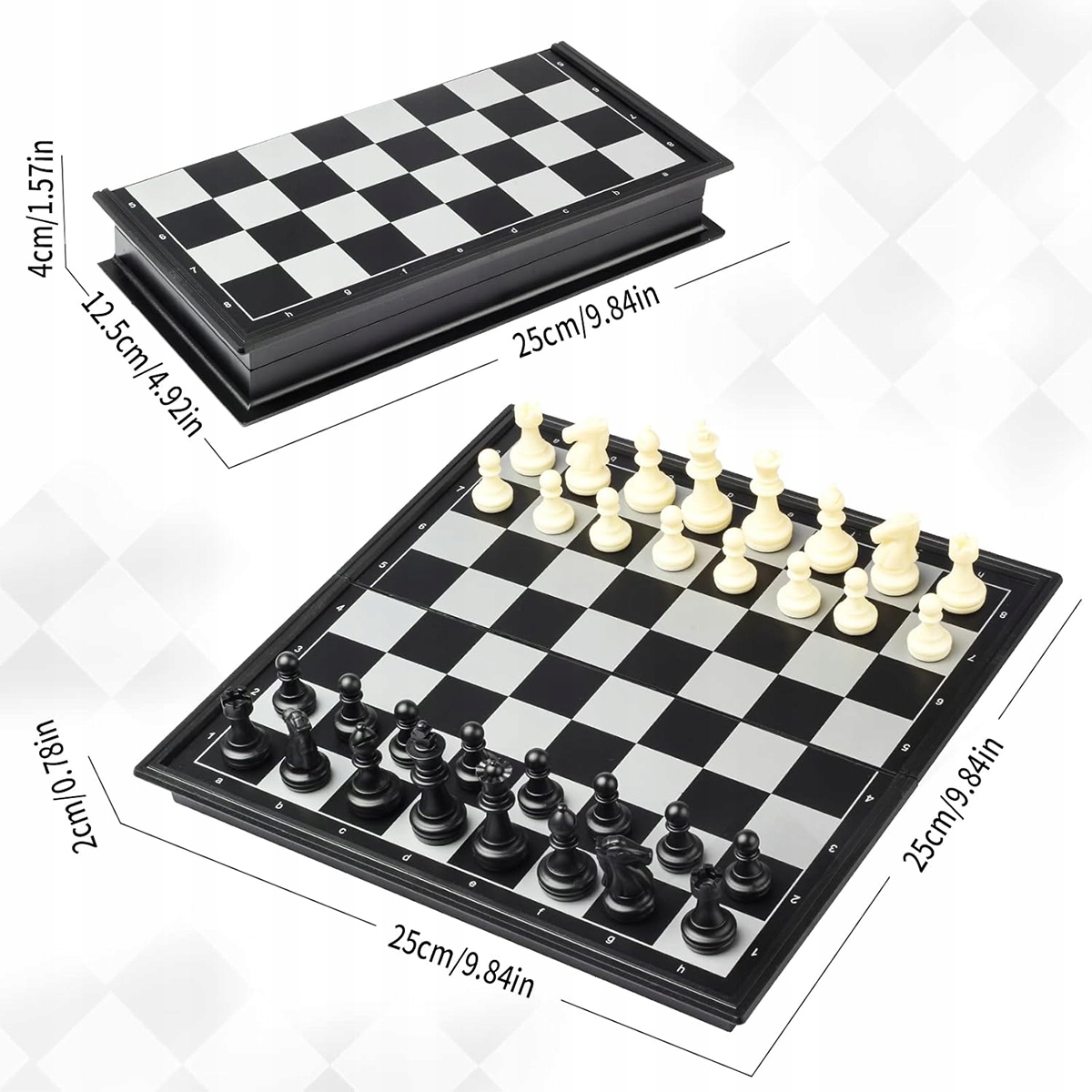 Складные магнитные шахматы для детей от 6 лет (черно-белые - 25 х 25 см)