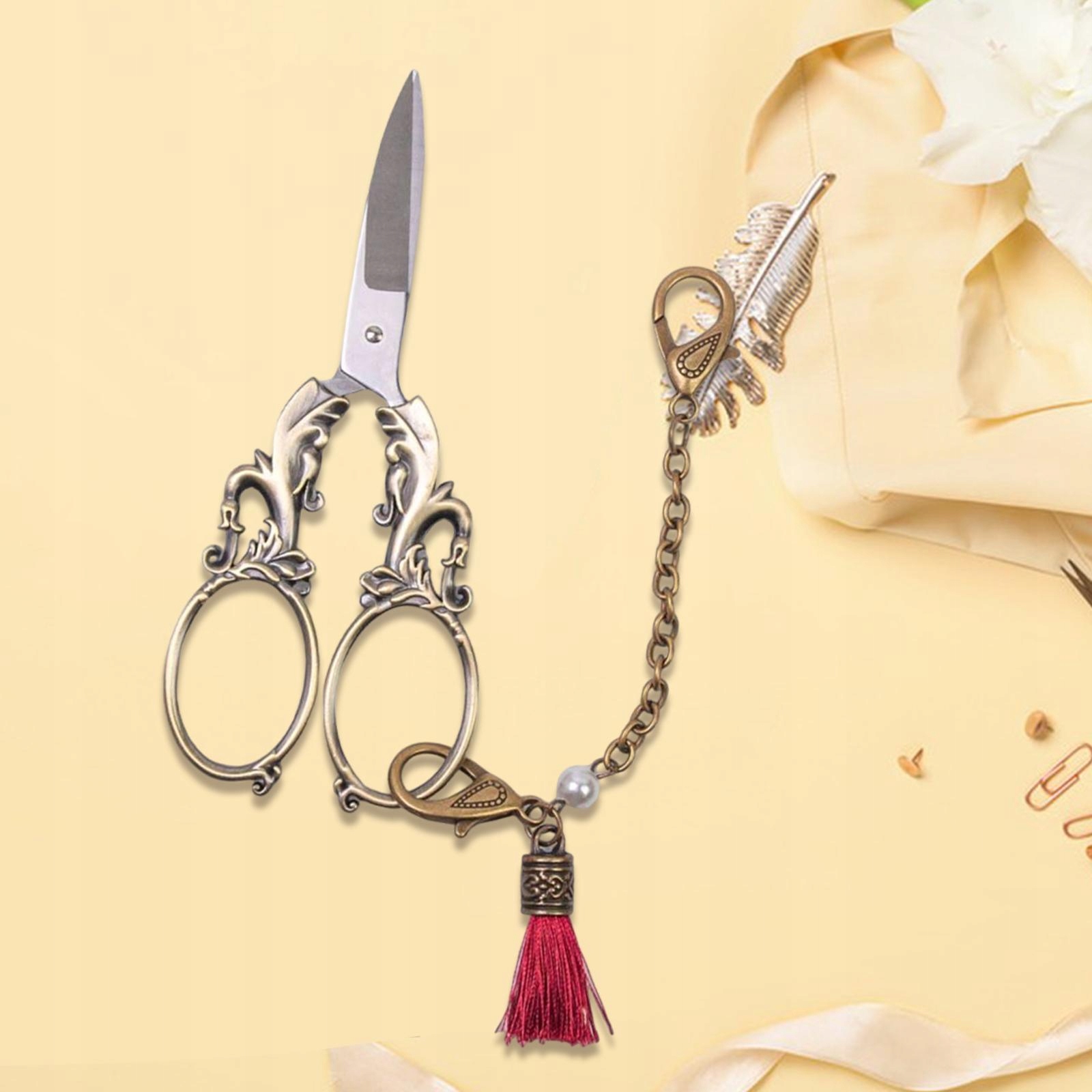 [Универсальное использование] Маленькие ножницы для домашнего использования, поделок своими руками, поделок из бумаги, резки пряжи, подарков и шитья. Винтажный дизайн с кисточками, элегантный и красивый, идеальный подарок для мамы, семьи, друзей.