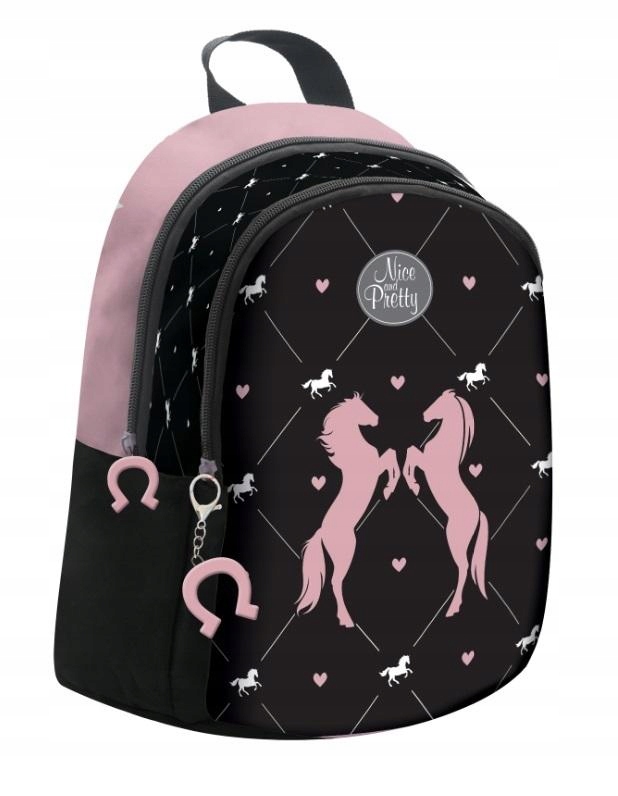 Небольшой рюкзак для поездок, детского сада и детского сада. Украшен модной графикой, которая понравится самым маленьким. Рюкзак имеет просторное основное отделение, передний карман и боковые карманы для воды или бутылки. Черный рюкзак с розовыми вставками, изображающими лошадь, – настоящий хит для девушек. Данная модель изготовлена из прочных и устойчивых к повреждениям материалов. Материалы, использованные при производстве, не представляют никакой угрозы для малыша. Стоит добавить, что описываемый рюкзак обеспечивает высочайший комфорт использования. Заднее отделение гибко адаптируется к позвоночнику. Описание рюкзака детского сада.