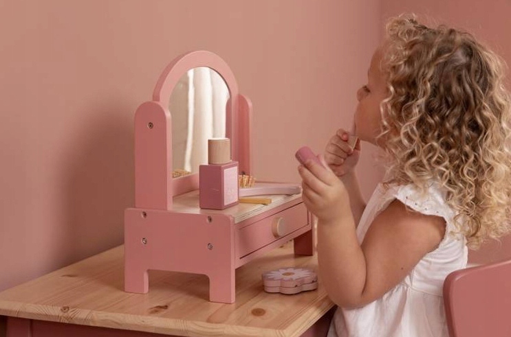 Красивый розовый деревянный туалетный столик для детей, поощряет гениальное и бесконечное веселье.