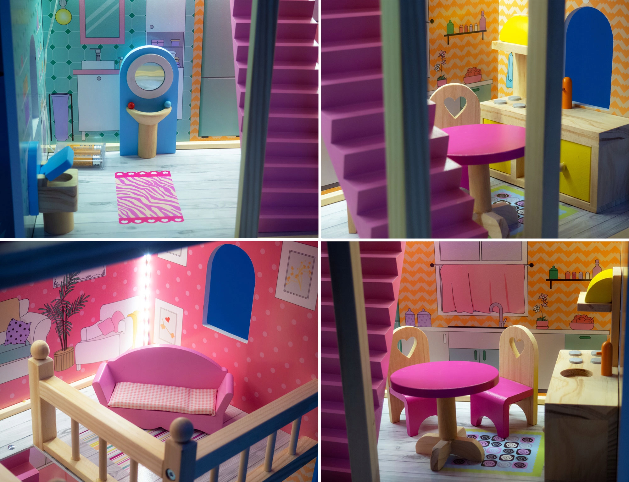 Огромное количество передвижной мебели, светодиодная подсветка, чудесные пастельные тона – это дом мечты для самых требовательных кукол!