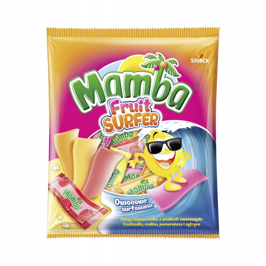 - Mamba Fruit Surfer — это вкусная растворимая жевательная резинка в форме плоских листьев, идеально подходящая для творческое развлечение в создании мамбастических фигур.