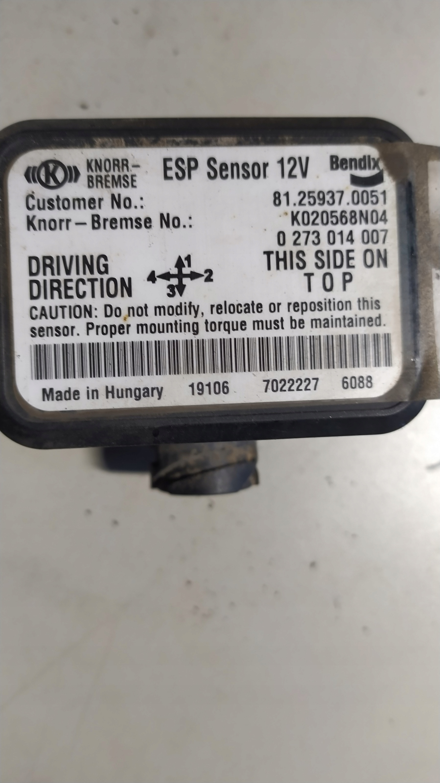 Man TGX TGS Датчик датчика ESP KNORR-BREMSE ESP 81259370051, K020568N04