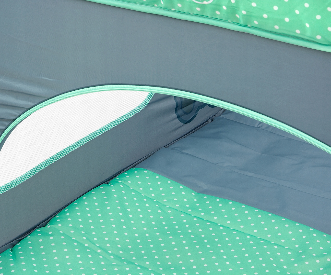 Боковицы кровати изготовлены из прочной сетки, обеспечивающей достаточную циркуляцию воздуха. Кроме того, они положительно влияют на чувство безопасности, ребенок видит своих родителей во время игры – поэтому он спокойно играет, находясь под присмотром родителей.