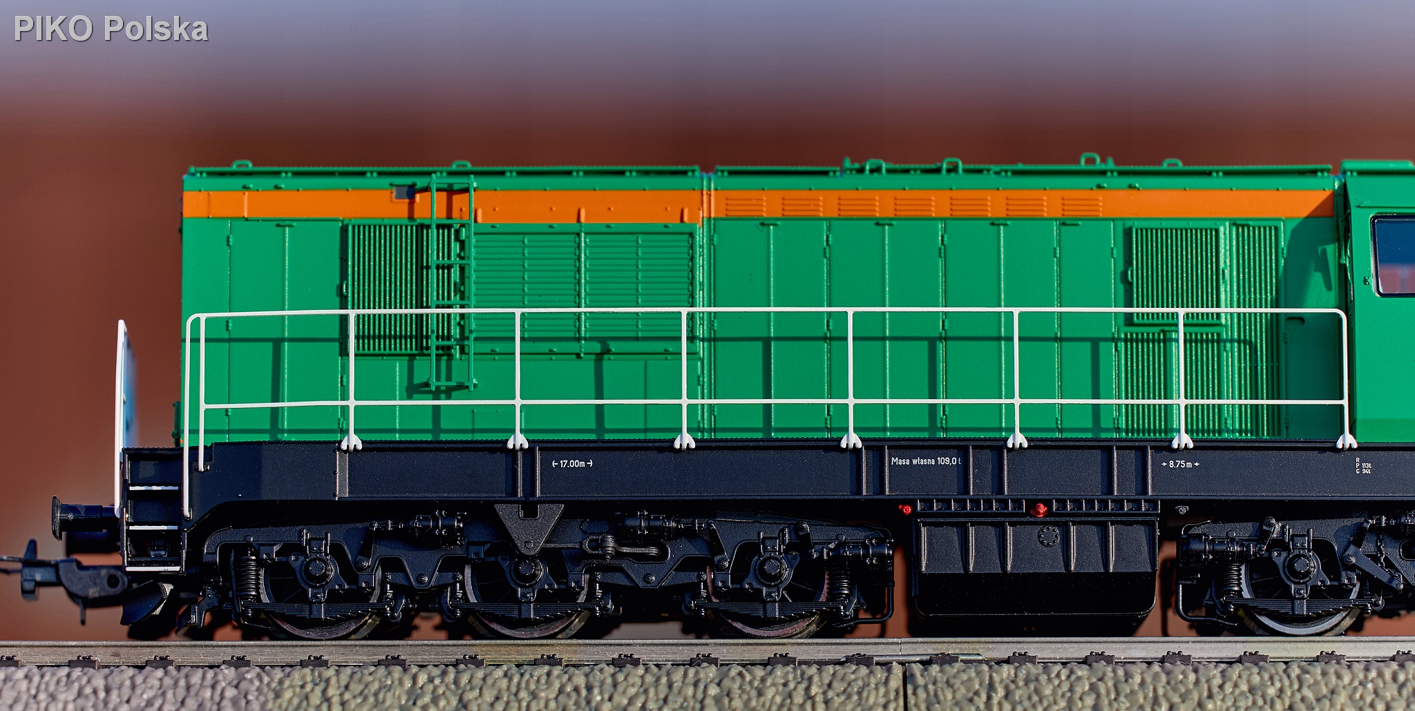 Новая конструкция также отличается от вращающегося вентилятора , прекрасно воспроизводимых колясок и филигранных металлических поручений. Технически, модель соответствует проверенной линейке продуктов Piko: центрально размещенным двигателем с двумя маховиками, приводит к тому, что внешние наборы обеих тележек с помощью карданских роликов