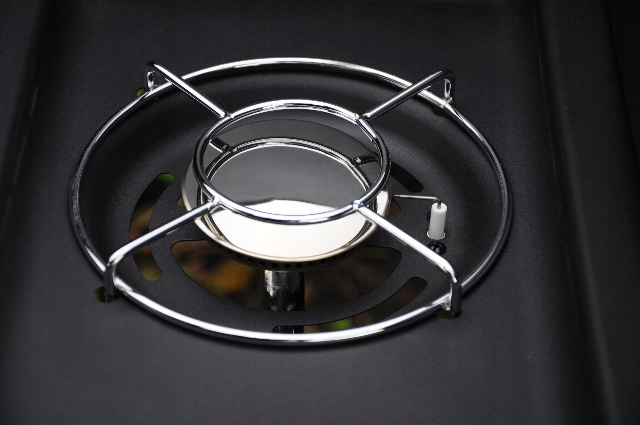 Боковая горелка имеет пьезорозжиг, интегрированный с ручкой регулировки газа. Благодаря этому вы можете легко и удобно зажечь пламя без необходимости использования спичек или зажигалки.