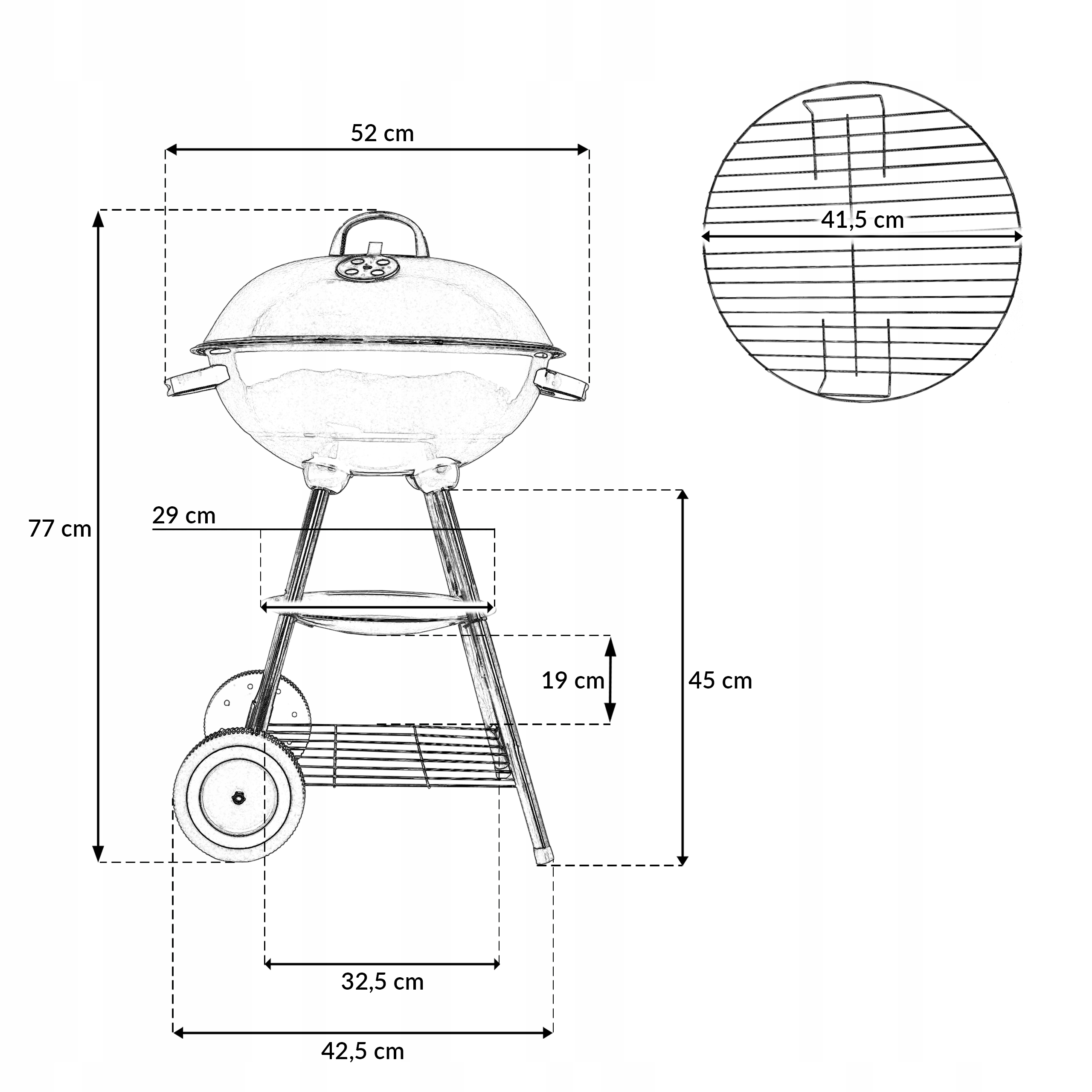 ✔️ решетка для угля, обеспечивающая правильную циркуляцию воздуха