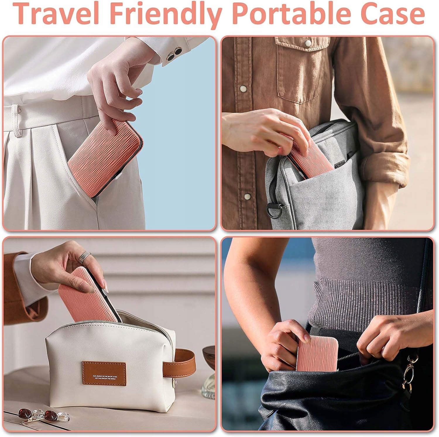 Компактный размер 12 × 6,8 см и вес 190 г позволяют набору легко поместиться в сумочке, рюкзаке или ручной клади ✈️. Стильный чехол из искусственной кожи с нежным эффектом водной ряби выглядит модно и защищает инструменты от повреждений.