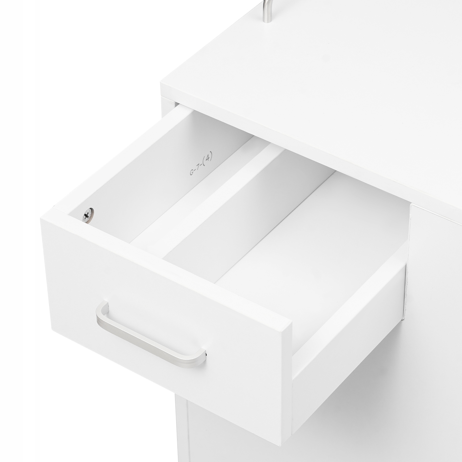 - Очень практично: В трех ящиках можно хранить инструменты для ухода за ногтями, лак для ногтей и кисти. (все не входит в комплект) и т. д., чтобы предотвратить их загрязнение пылью, защитить ваши вещи и повысить вашу конфиденциальность. На просторном рабочем столе можно разместить лампы для ногтей, коробки для хранения (не входят в комплект) и т. д., что упрощает быстрый доступ к предметам. Его можно использовать не только как стол для маникюрного салона, но и как письменный стол, компьютерный стол и т. д., чтобы вы могли комфортно работать или поручить детям делать уроки.
